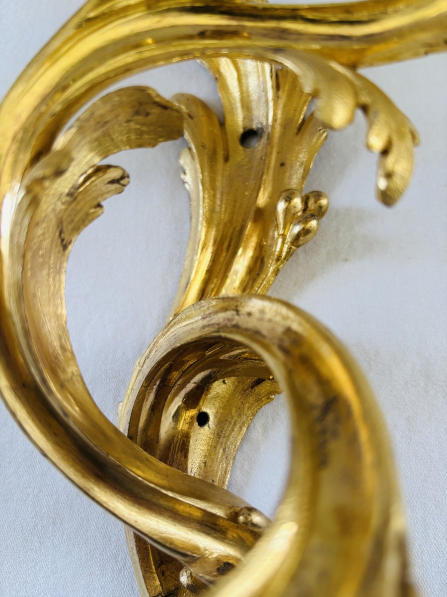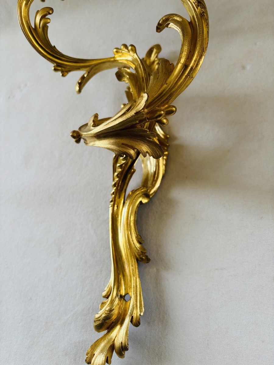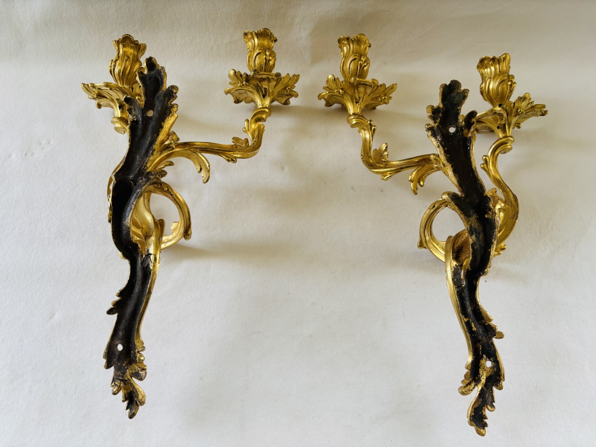 Retrouver le mobilier ou les objets d''art similaires à « Paire d'appliques Louis XV en bronze doré » présenté par Jullion Antiquités, antiquaire à Port d'envaux dans la catégorie Appliques Louis XV, Luminaires.