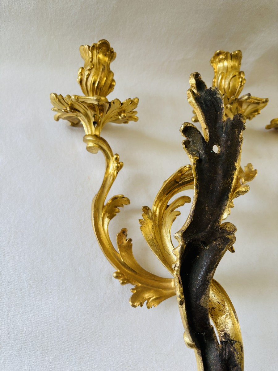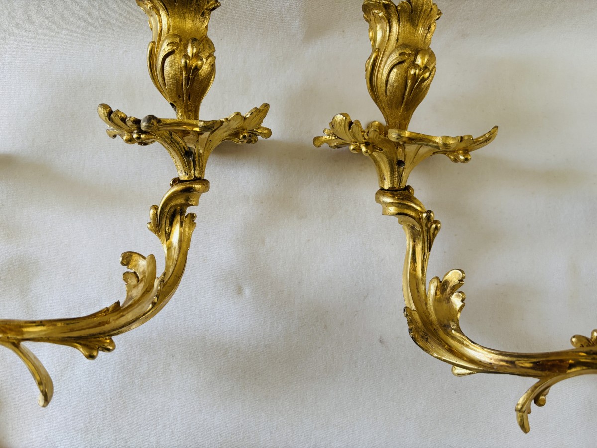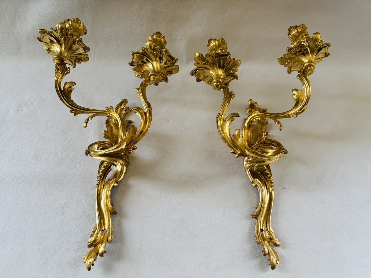 Retrouver le mobilier ou les objets d''art similaires à « Paire d'appliques Louis XV en bronze doré » présenté par Jullion Antiquités, antiquaire à Port d'envaux dans la catégorie Appliques Louis XV, Luminaires.