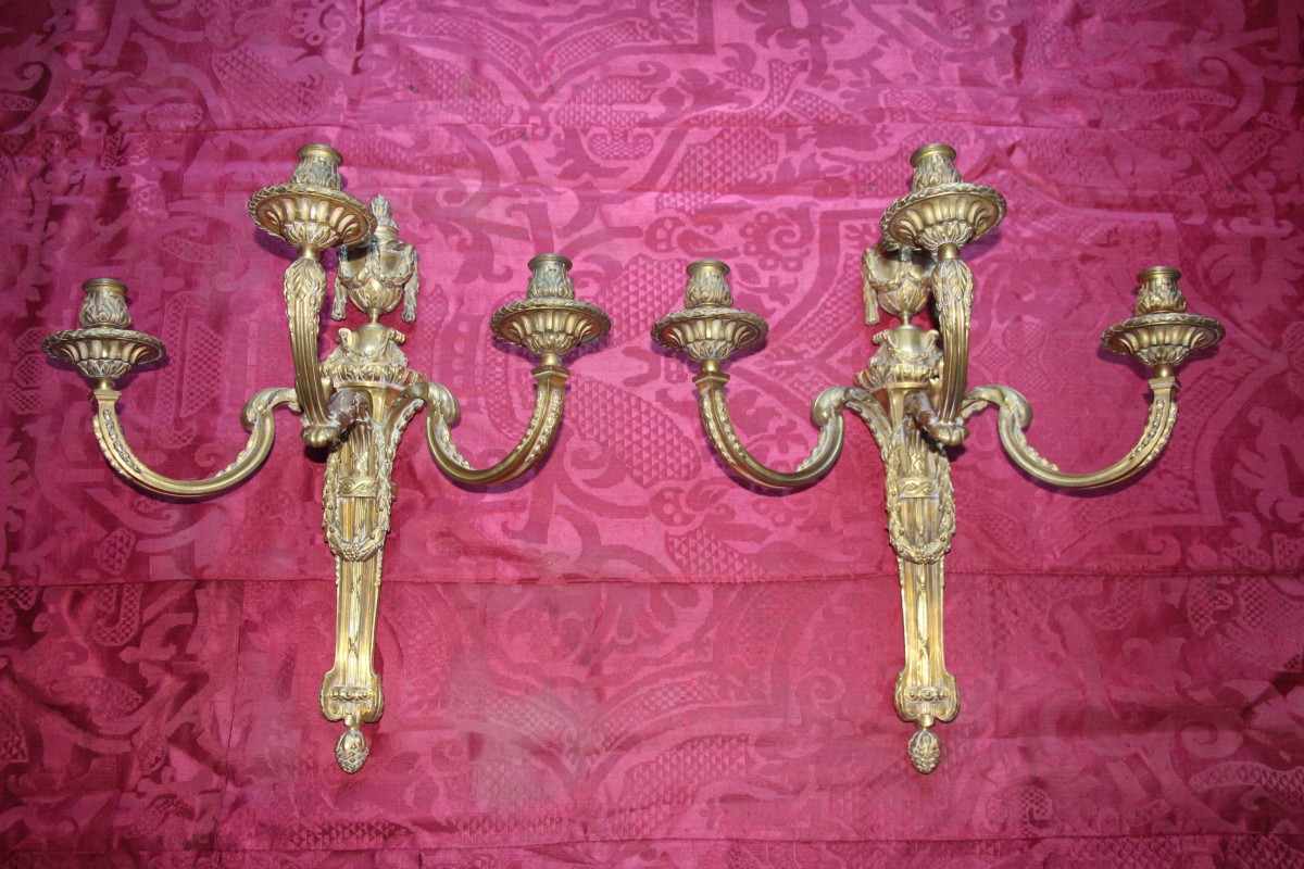 Retrouver le mobilier ou les objets d''art similaires à « Paire d'appliques Louis XVI d'après Delafosse » présenté par Didascalies, antiquaire à Aix-en-Provence dans la catégorie Appliques Louis XVI, Luminaires.