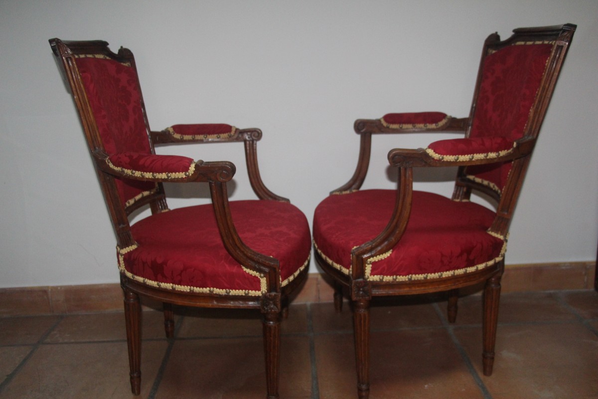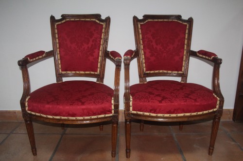 Belle et élégante paire de fauteuils en noyer, de l'époque Louis XVI, vers 1780, XVIIIe siècle.