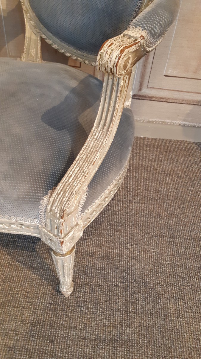 Retrouver le mobilier ou les objets d''art similaires à « Paire de fauteuils Louis XVI, estampillés P BERNARD » présenté par Sylvain Rochas, antiquaire à Versailles dans la catégorie Fauteuil & Bergère Louis XVI, Sièges.