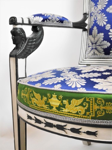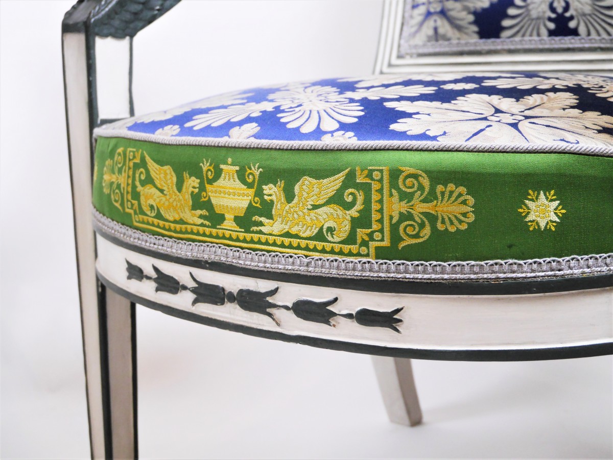 Comme sous l'Ancien Régime les sièges peints étaient courants sous l'Empire. Malheureusement le mobilier doré étant plus commercial, très peu d'exemplaires polychromes ont traversé les siècles, puisque le moindre siège digne d'intérêt était redoré...