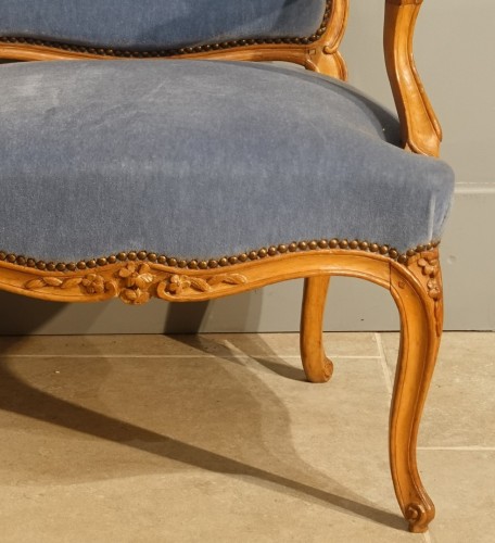 Les traverses ainsi que les dossiers sont élégamment chantournés et finement sculptés de fleurs et feuillages.