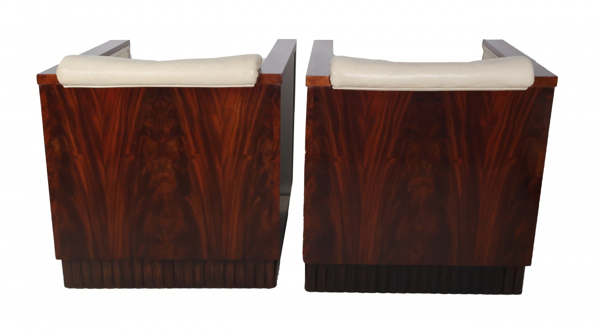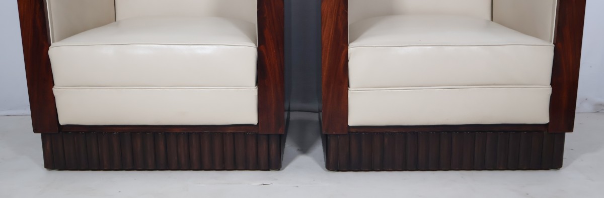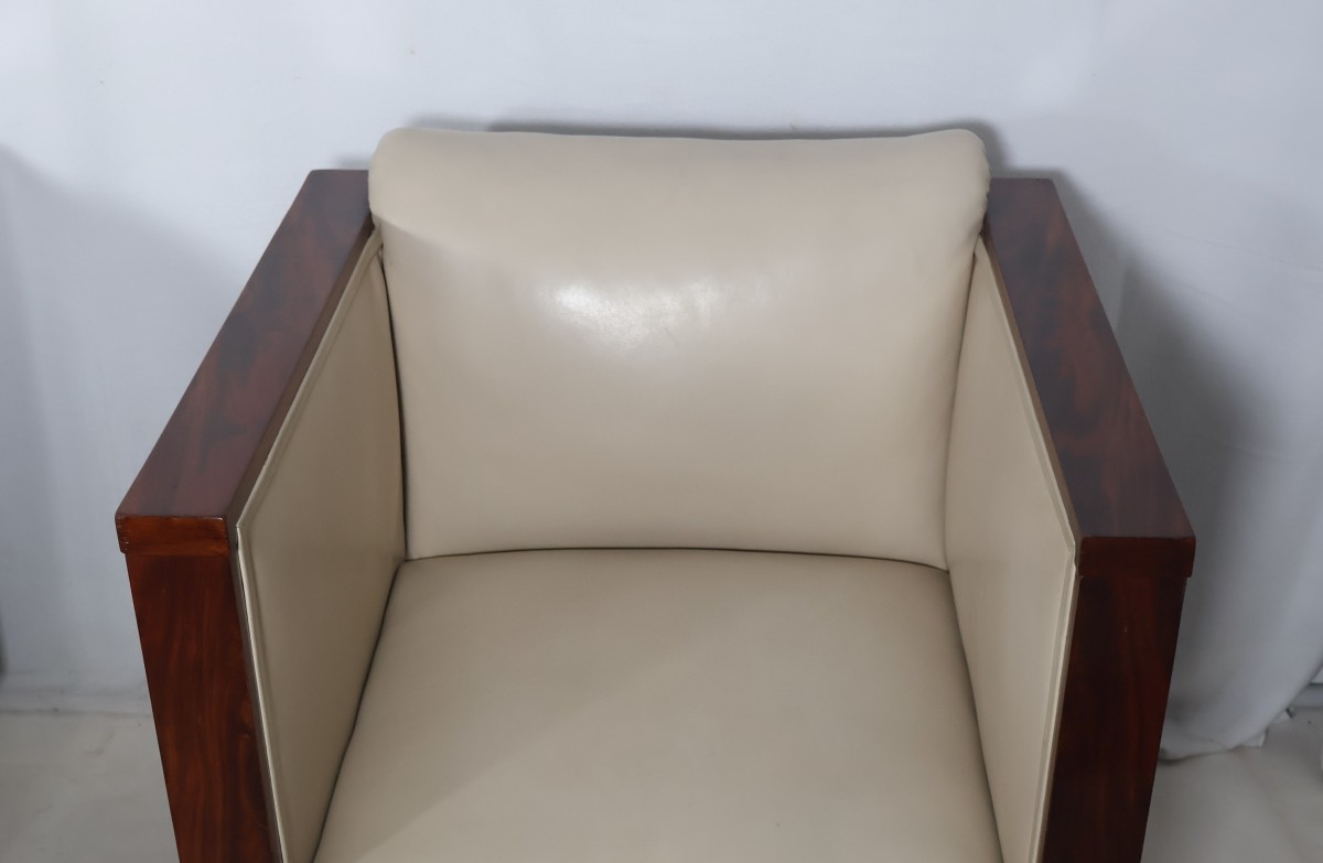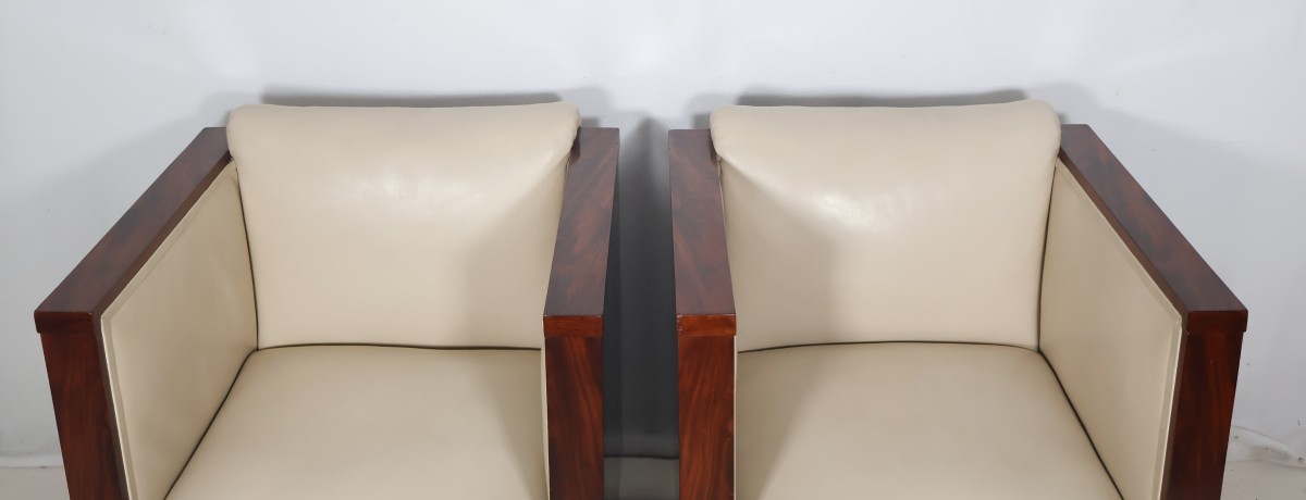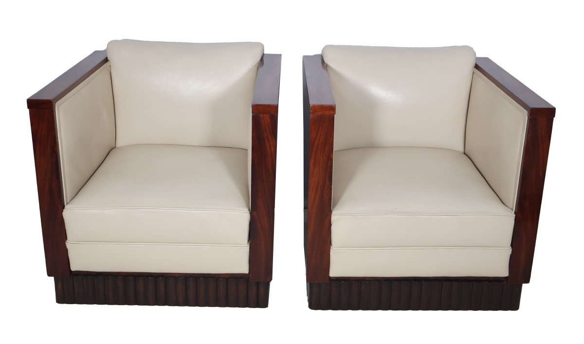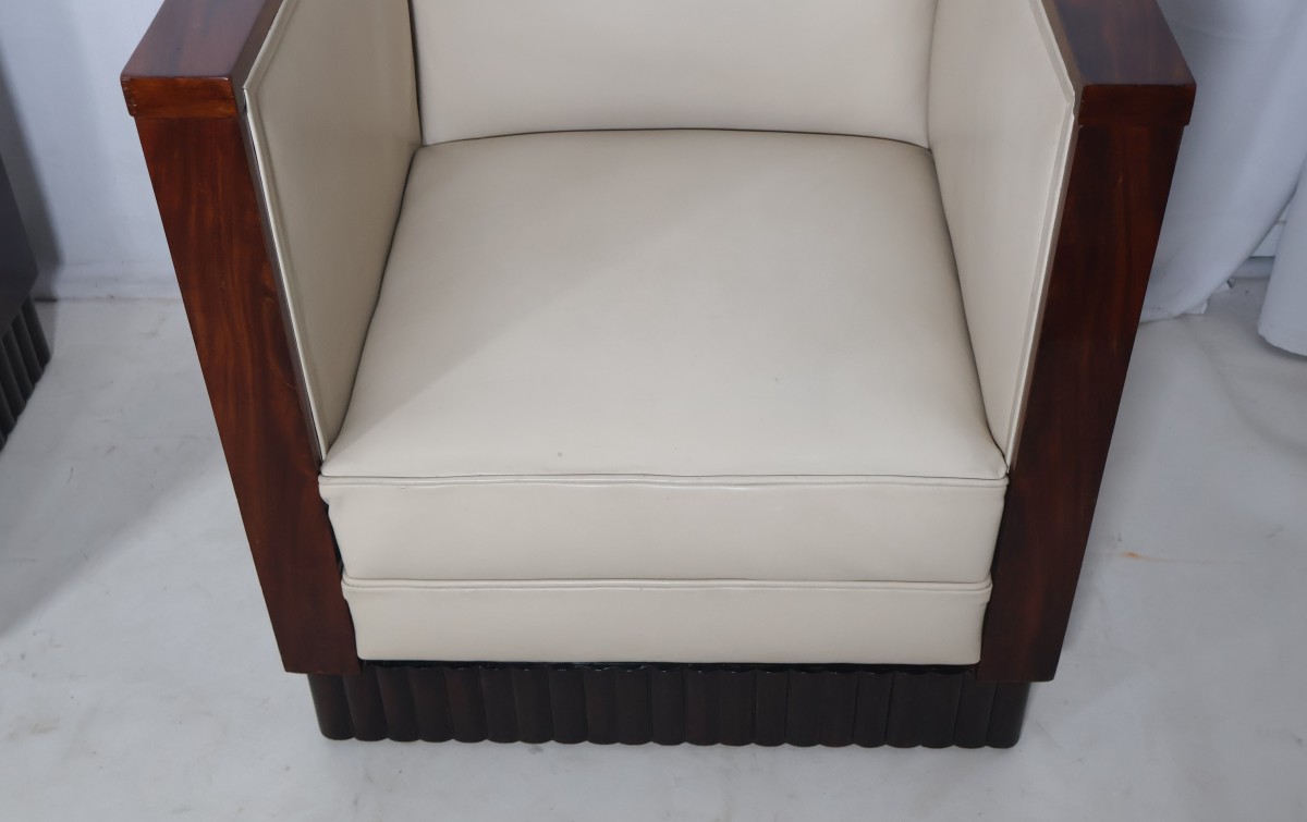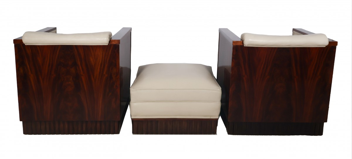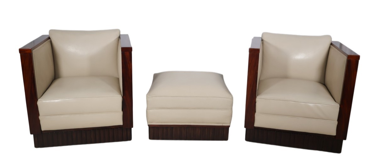 Paire de fauteuils cubistes et leur pouf assorti époque Art Déco.