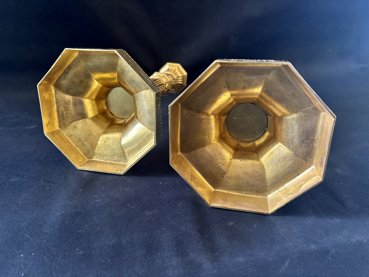 Retrouver le mobilier ou les objets d''art similaires à « Paire de grands bougeoirs en bronze doré » présenté par Jullion Antiquités, antiquaire à Port d'envaux dans la catégorie Bougeoirs et Chandeliers Directoire, Luminaires.