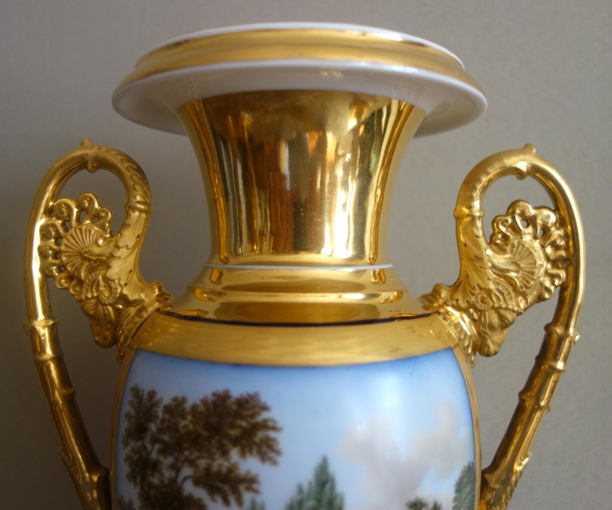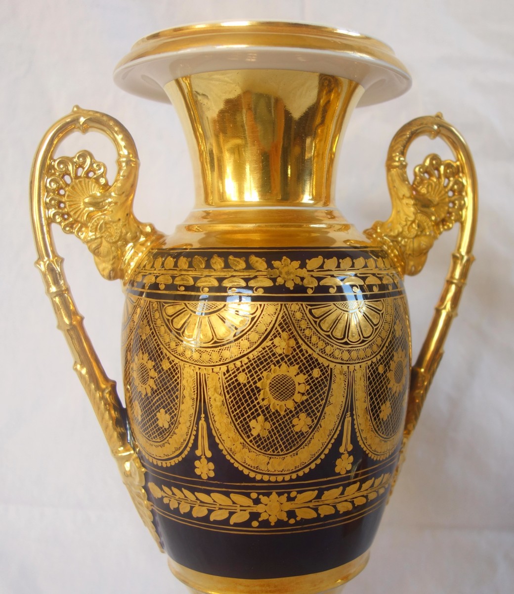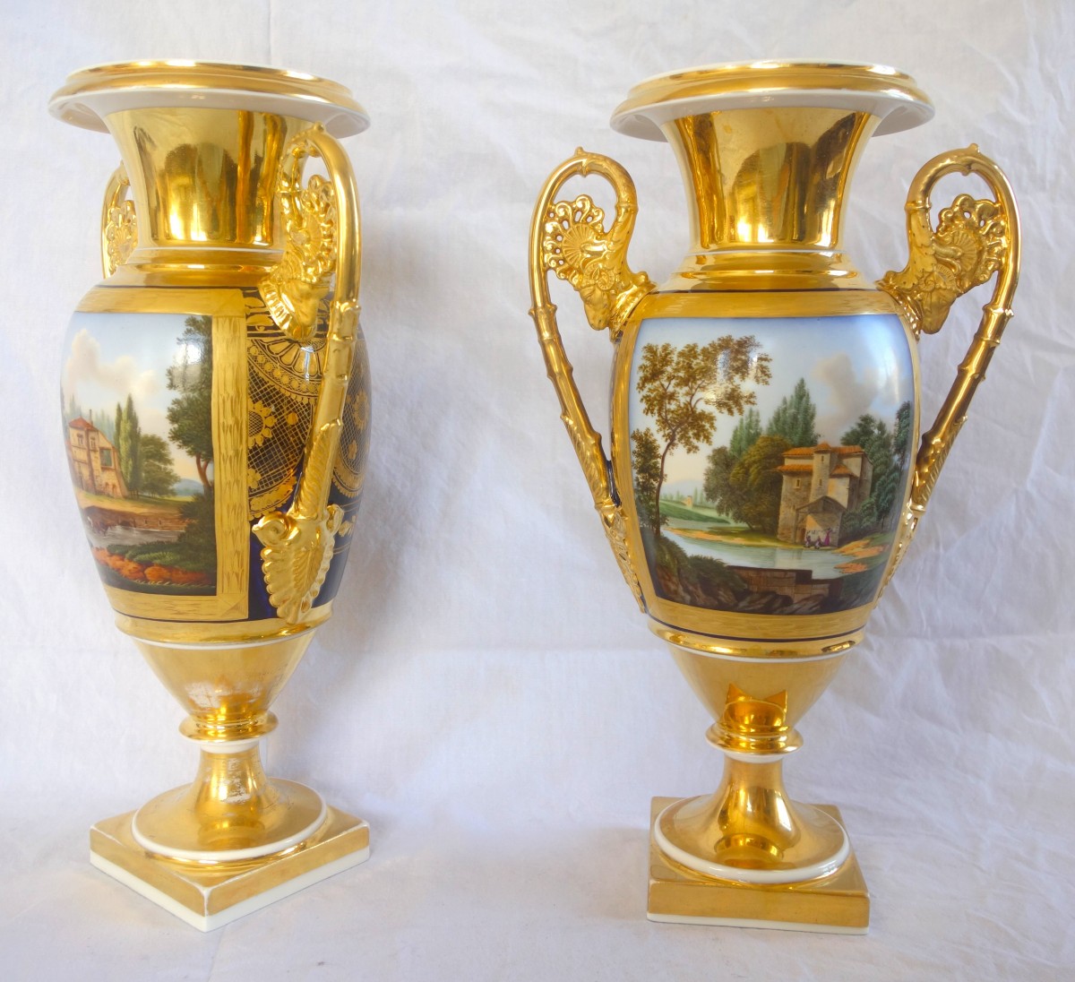 Paire de vases d'ornement en porcelaine de Paris, style Empire d'époque Restauration - France, début du XIXe siècle vers 1820.