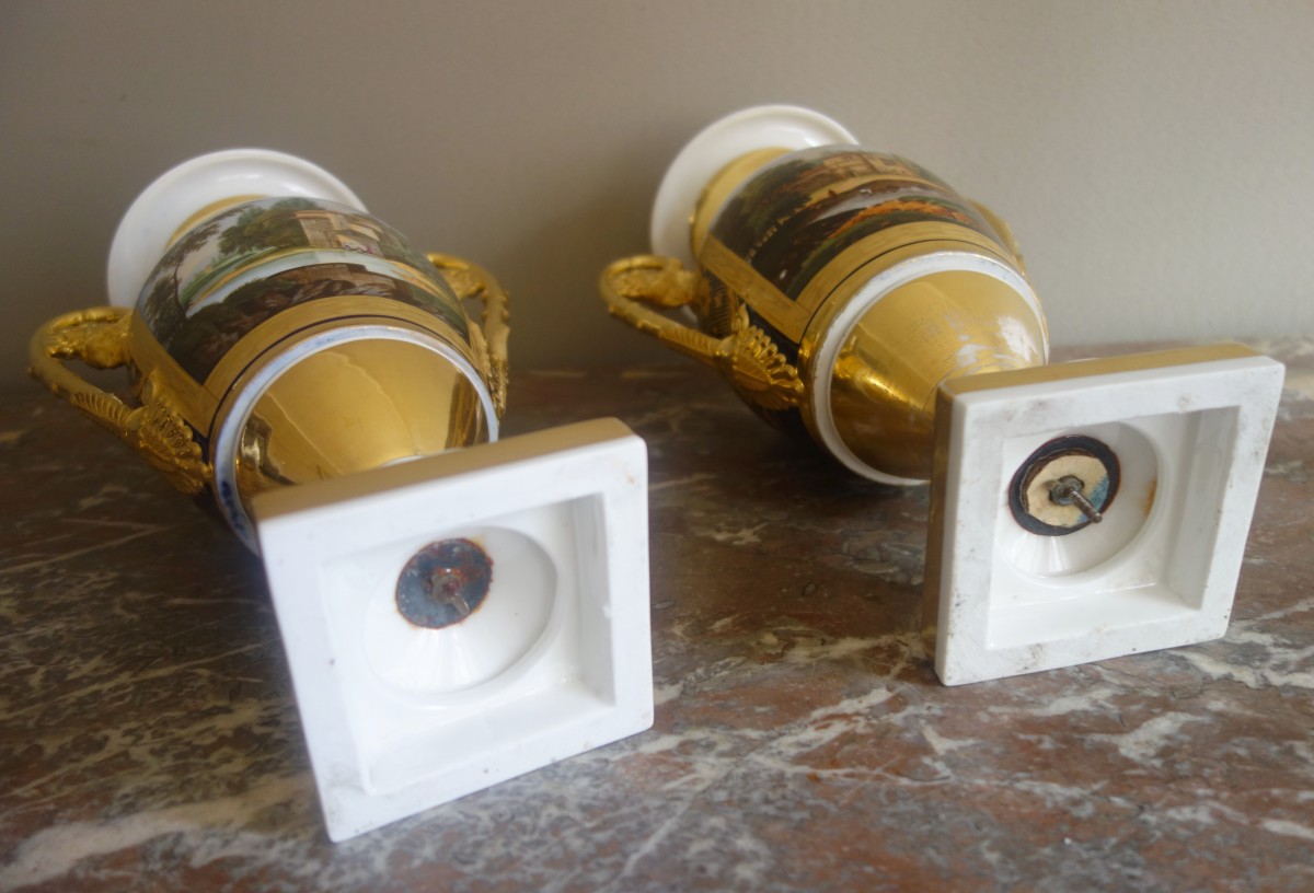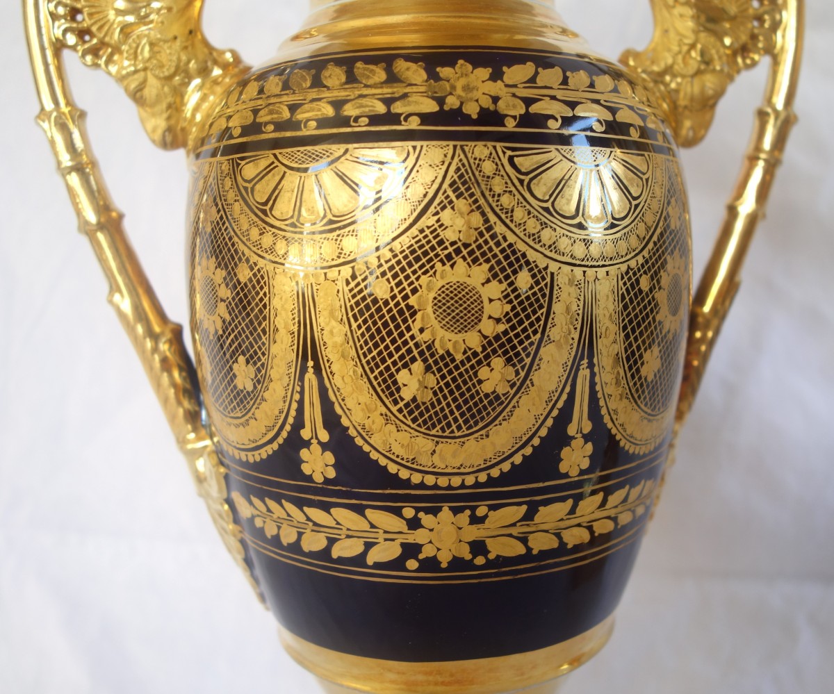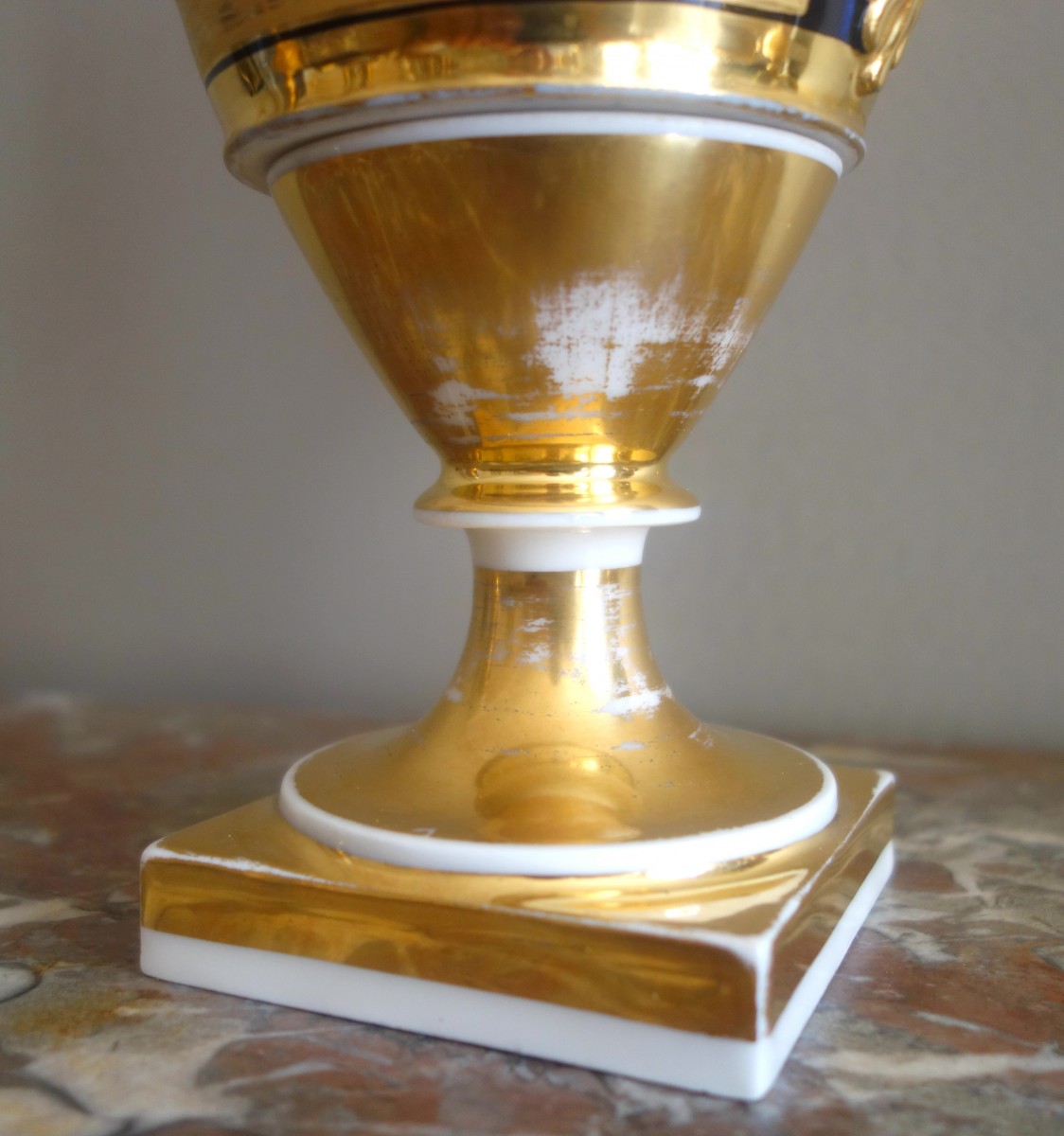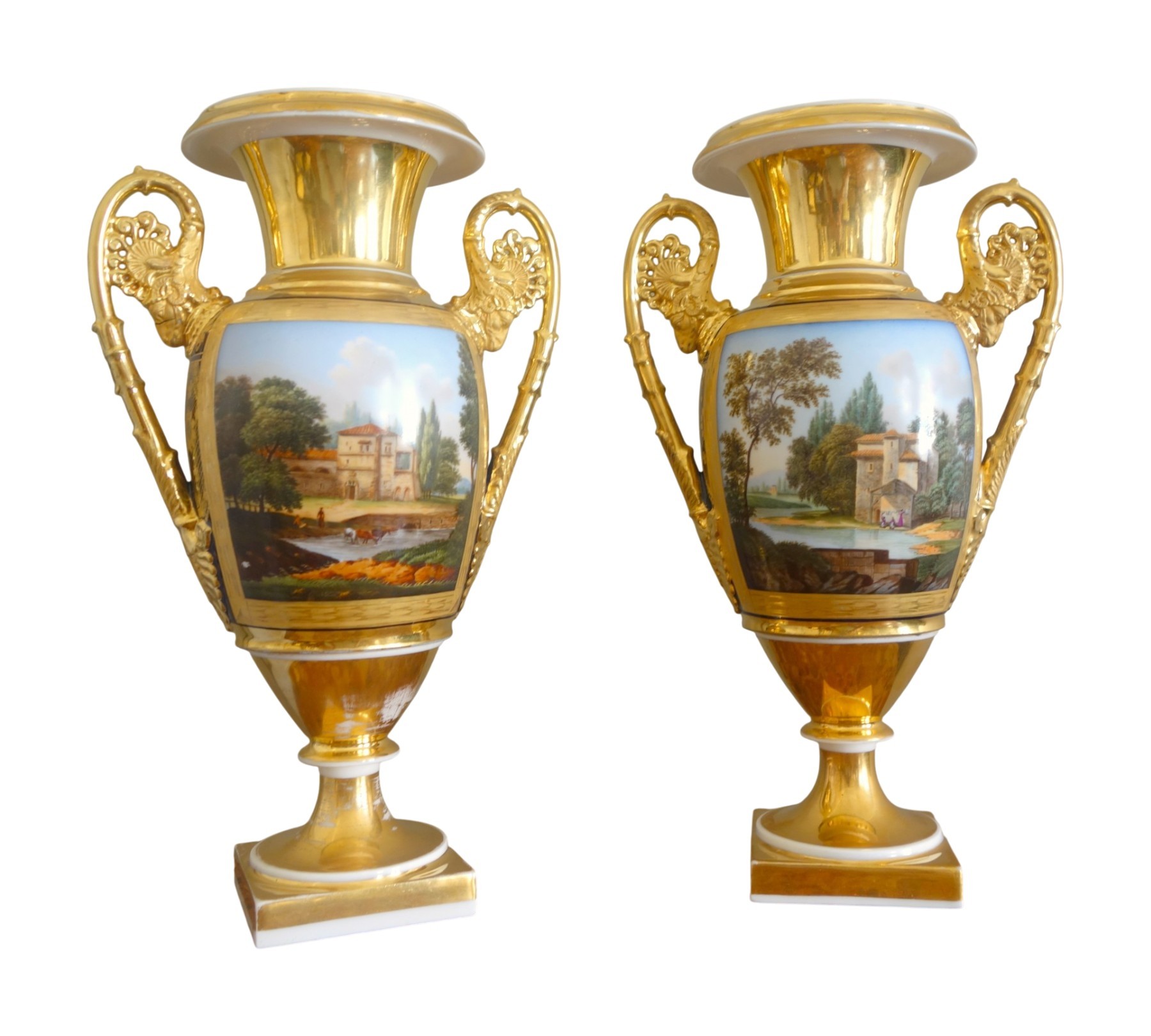Paire de vases d'ornement en porcelaine de Paris, style Empire d'époque Restauration - France, début du XIXe siècle vers 1820.