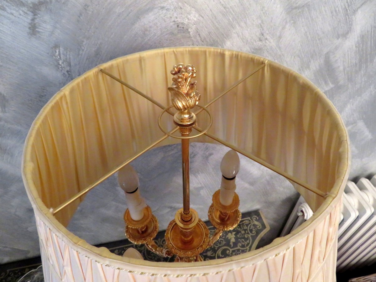 Les abats-jours d’origine sont en soie plissée et en trés bon état (pas de trou / pas de tache)