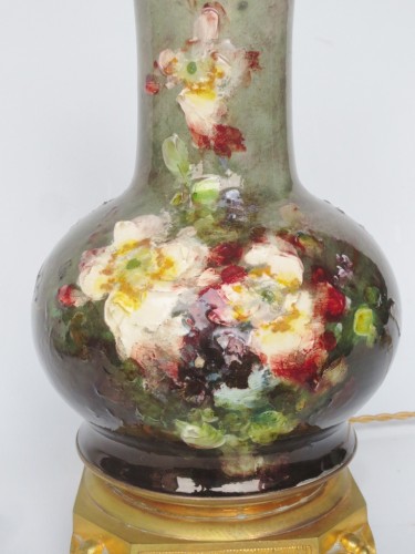Retrouver le mobilier ou les objets d''art similaires à « Paire de lampes en céramique impressionnistes » présenté par Anne Besnard, antiquaire à Saint-Ouen dans la catégorie Lampe Art nouveau, Luminaires.