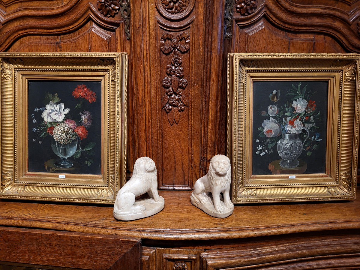 Très belle paire de lion, en marbre blanc probablement italien, 16e
