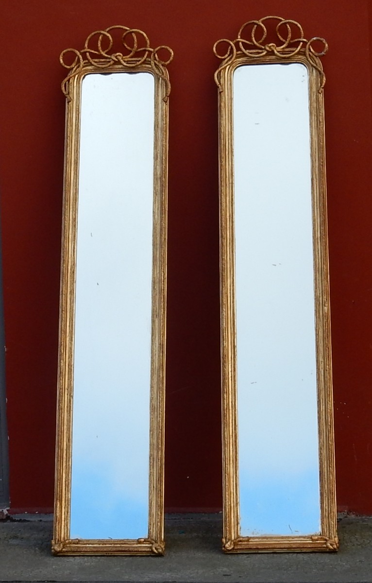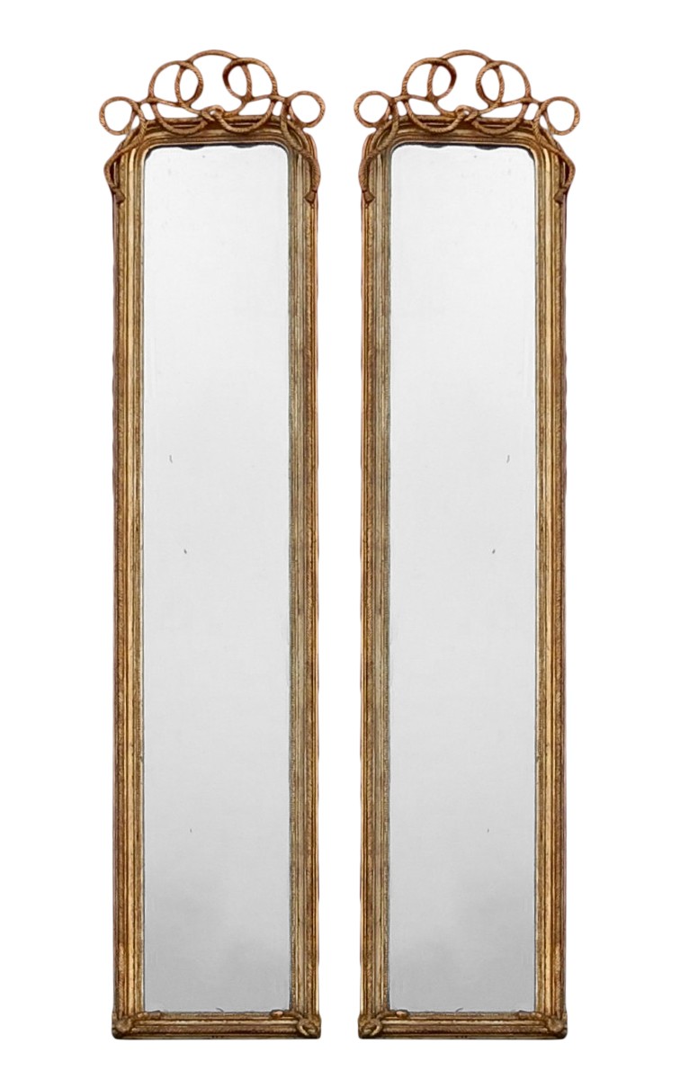 Paire de miroirs aux entrelats ou liens noués dans un encadrement bois et moulures stuc redorées à la feuille. les miroirs sont au mercure époque 1850/80