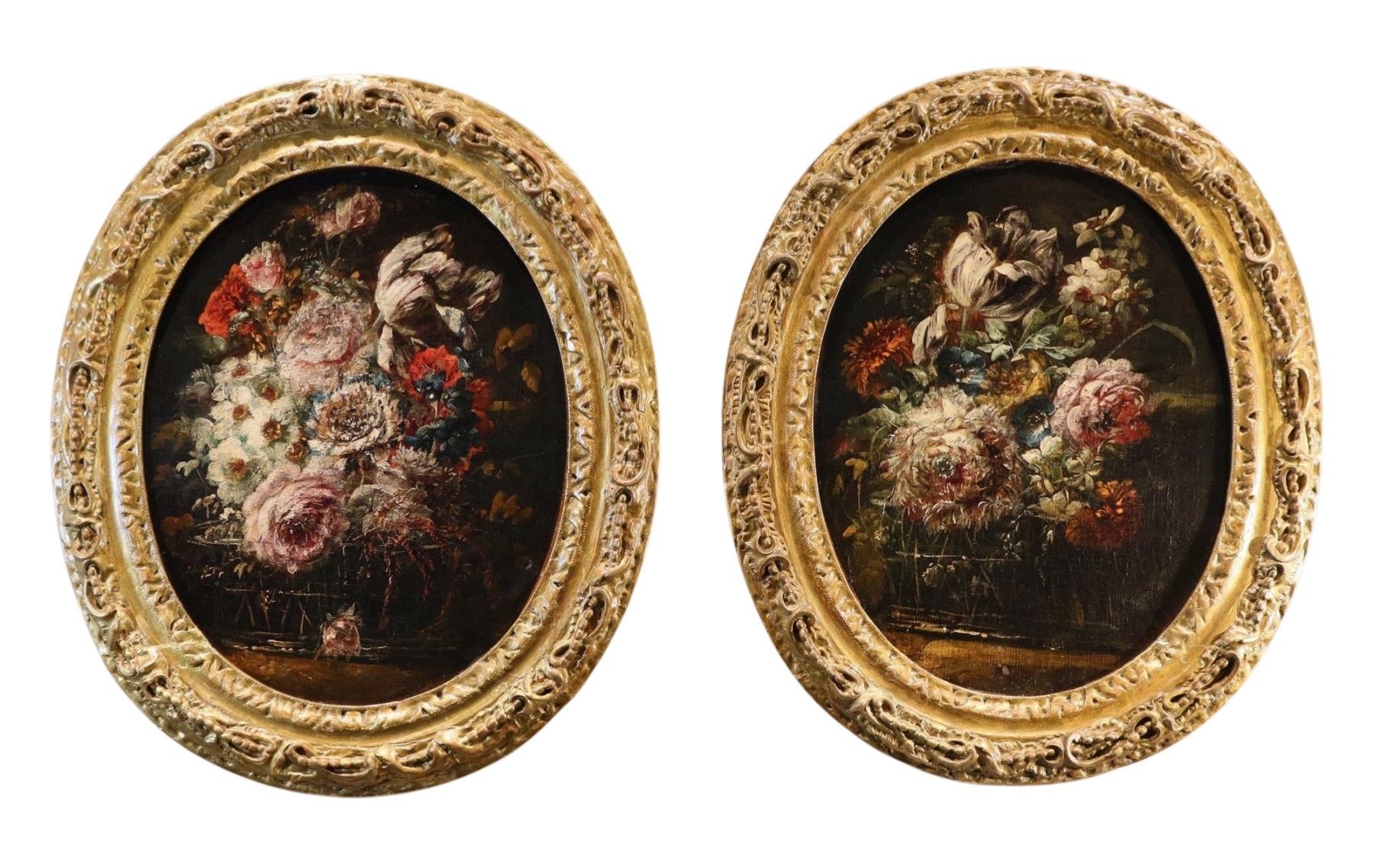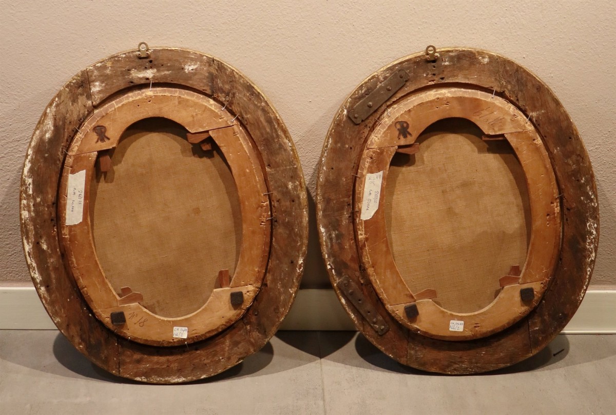 huiles sur toile ovale 41 x 33 cm. - avec cadres anciens 54 x 45 cm.