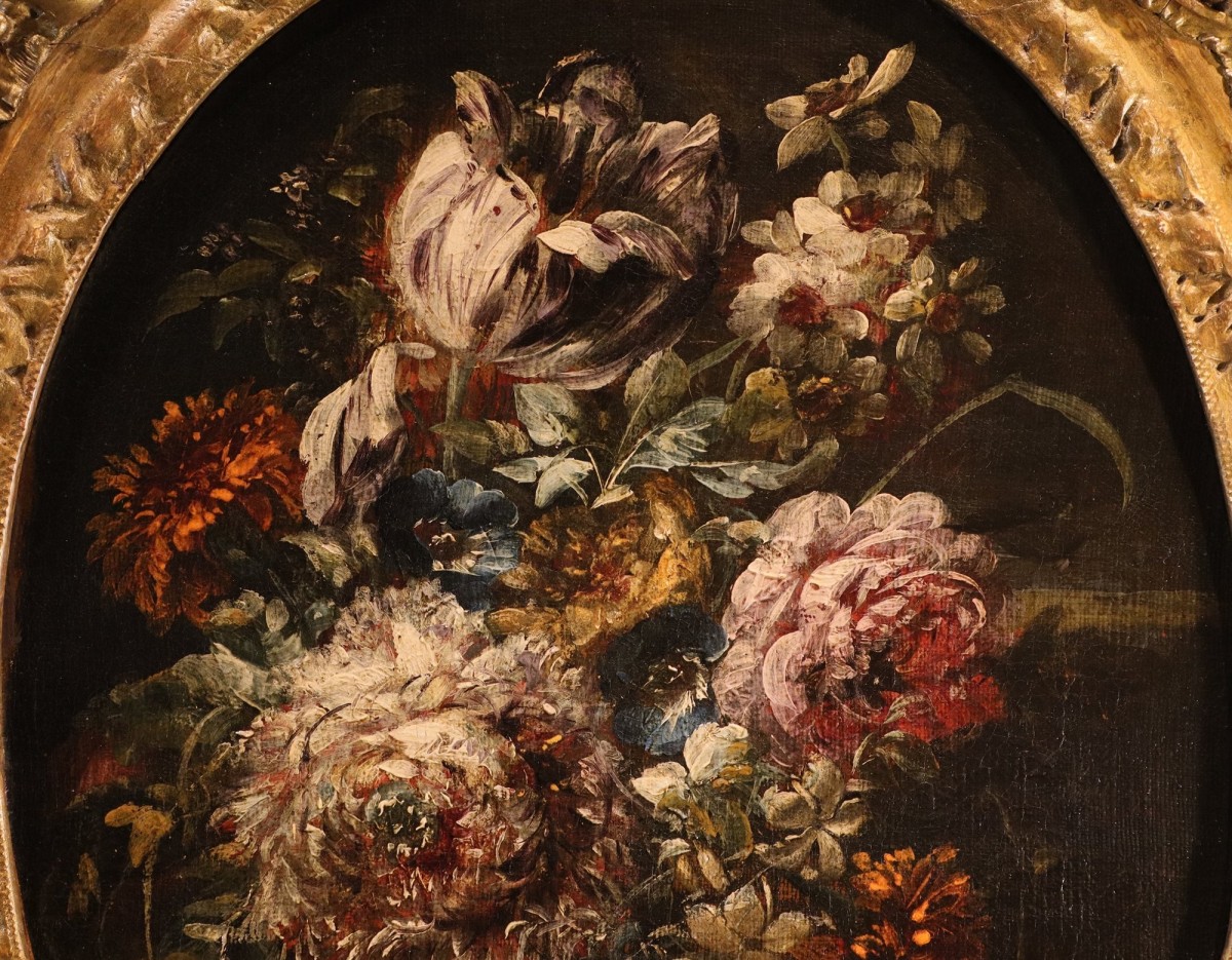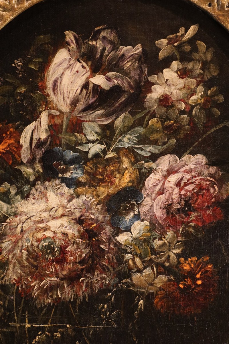 Cette nature morte de fleurs est attribuée à un représentant de l'école lombarde de la seconde moitié du XVIIe siècle, et plus particulièrement à l'atelier de Margherita Caffi (Crémone 1647 – Milan 1710).