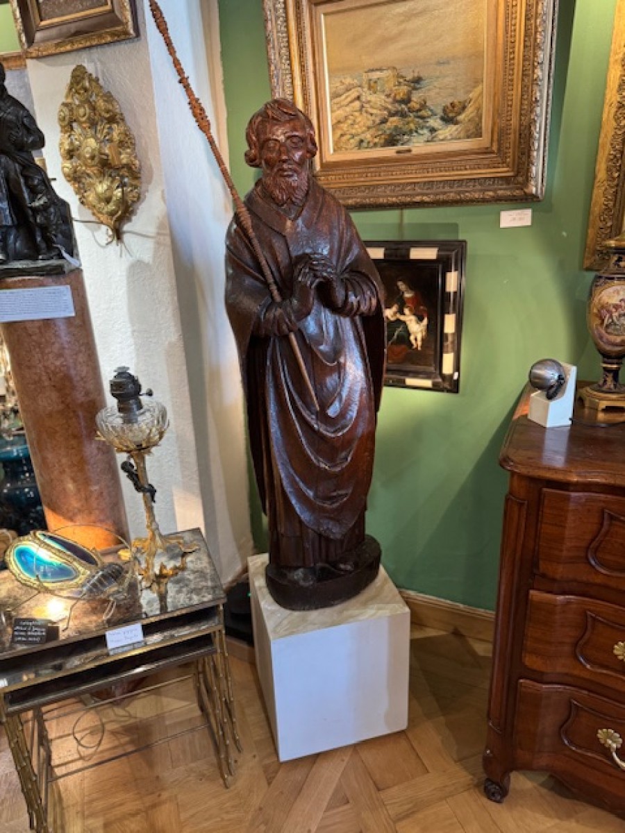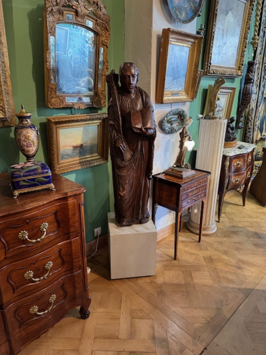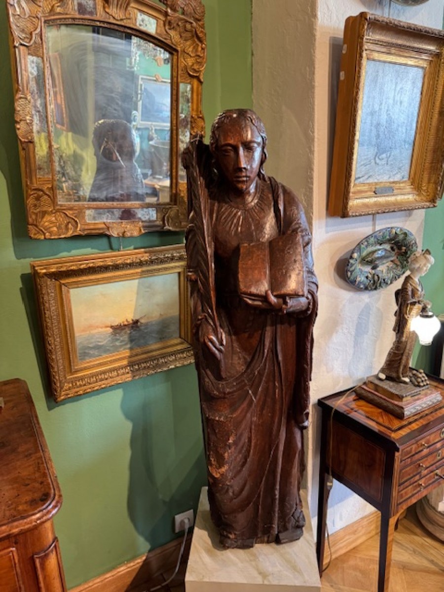Retrouver le mobilier ou les objets d''art similaires à « Paire de statues 17e représentant Saint Jean et Sainte Catherine » présenté par Antiquités Paul Azzopardi, antiquaire à Marseille dans la catégorie Sculpture en Bois Louis XIII, Sculpture.