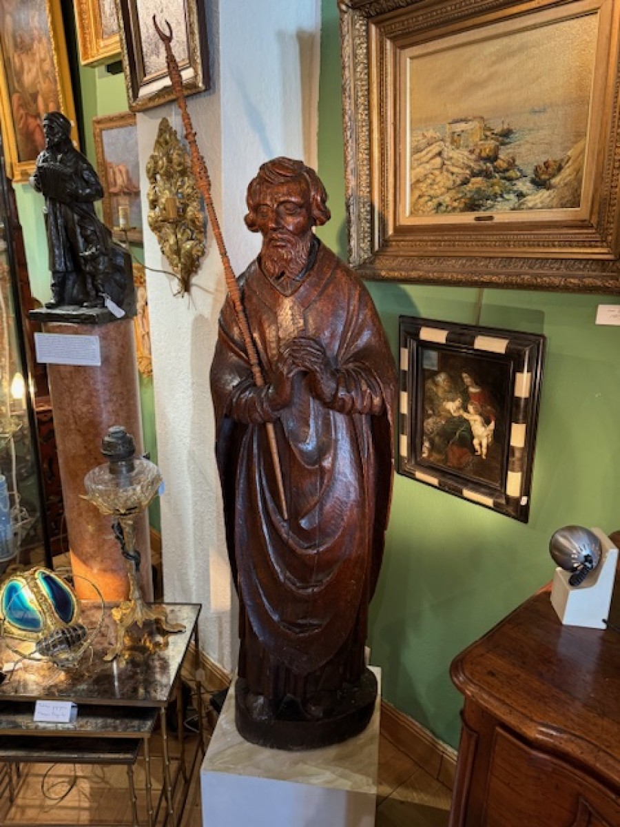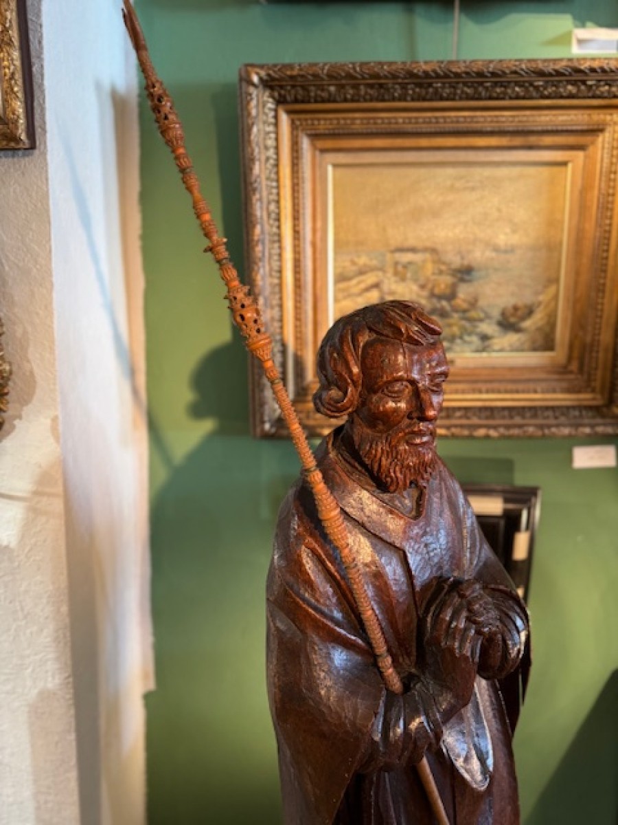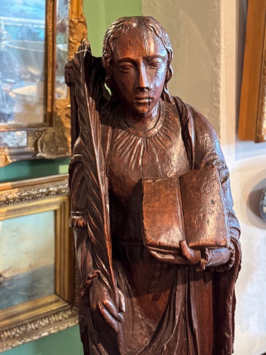 Retrouver le mobilier ou les objets d''art similaires à « Paire de statues 17e représentant Saint Jean et Sainte Catherine » présenté par Antiquités Paul Azzopardi, antiquaire à Marseille dans la catégorie Sculpture en Bois Louis XIII, Sculpture.