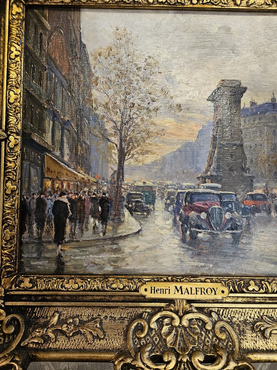 Henri Malfroy (1895-1944) était un peintre français connu pour ses paysages urbains et marins, dans une veine impressionniste. Son œuvre s'inscrit dans la tradition des peintres de la Belle Époque et du début du XXe siècle, capturant avec élégance et sensibilité l'atmosphère des villes et des ports français. Il affectionnait particulièrement les représentations de rues parisiennes animées, capturant l’énergie et l’élégance de la capitale sous la pluie ou au coucher du soleil.