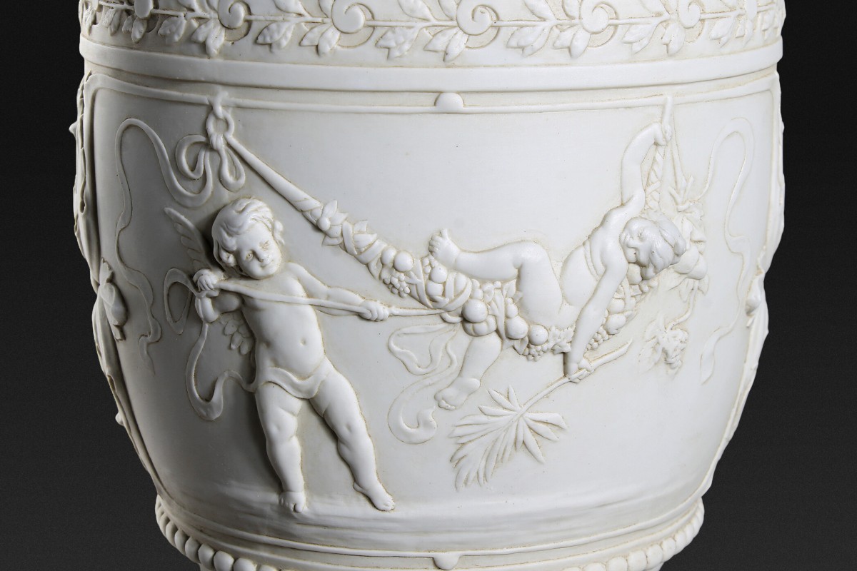 Le biscuit, non émaillé, très apprécié à la fin du XVIII? siècle pour son aspect sculptural proche du marbre, répond au goût de l’époque pour l’Antique.
