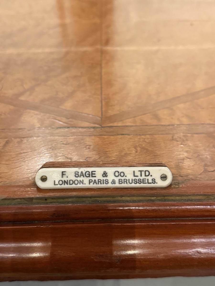 Durant l’entre-deux-guerres, la maison Sage était reconnue comme la référence absolue pour les vitrines et présentoirs des boutiques les plus prestigieuses d’Europe. Ces vitrines sont réalisées en acajou, avec de magnifiques vitres galbées à l’avant et sur les côtés, offrant une visibilité optimale des objets exposés.