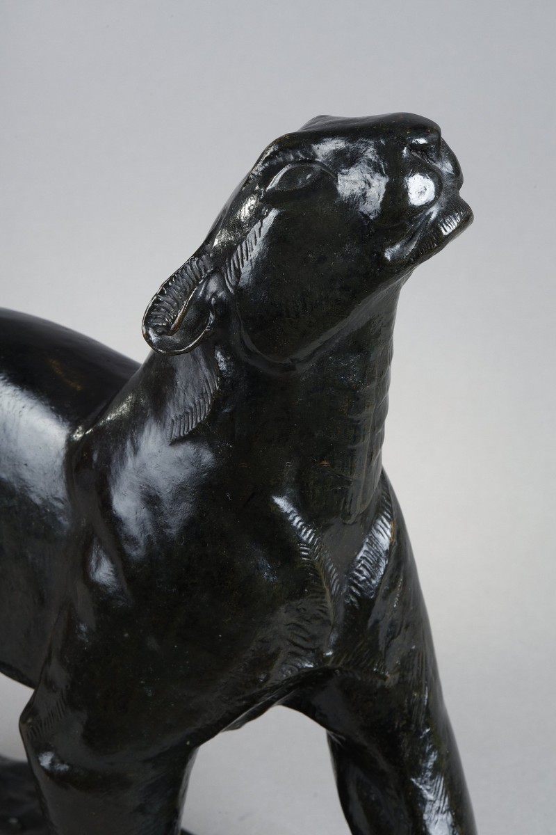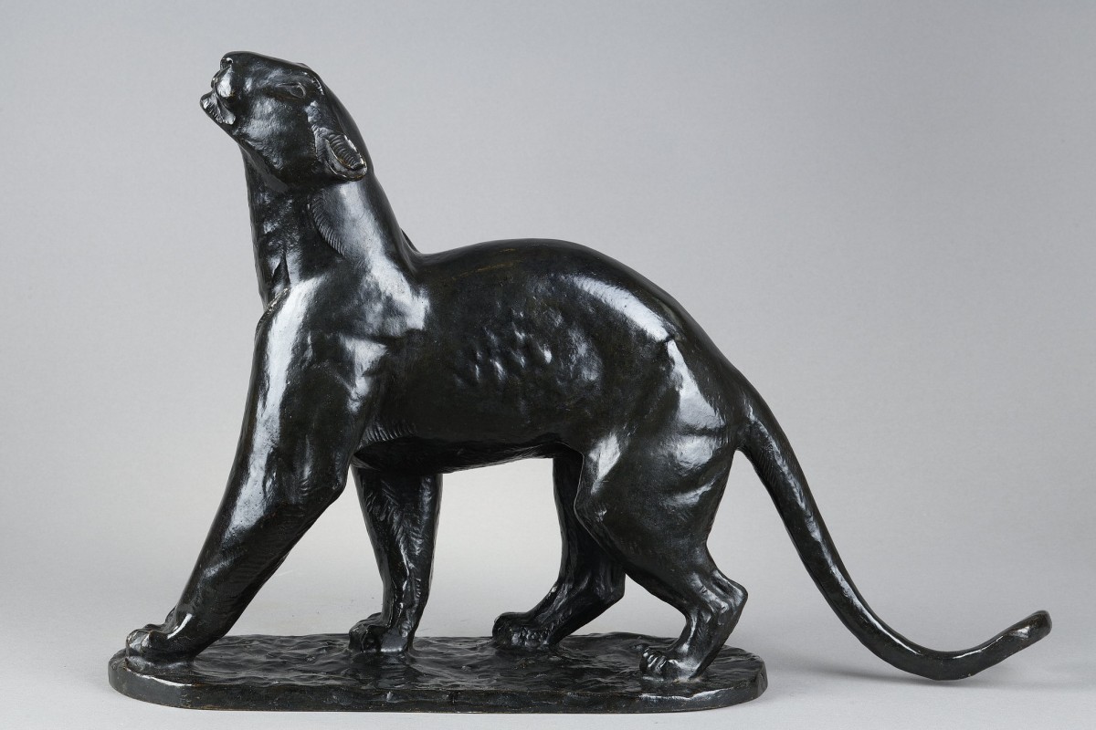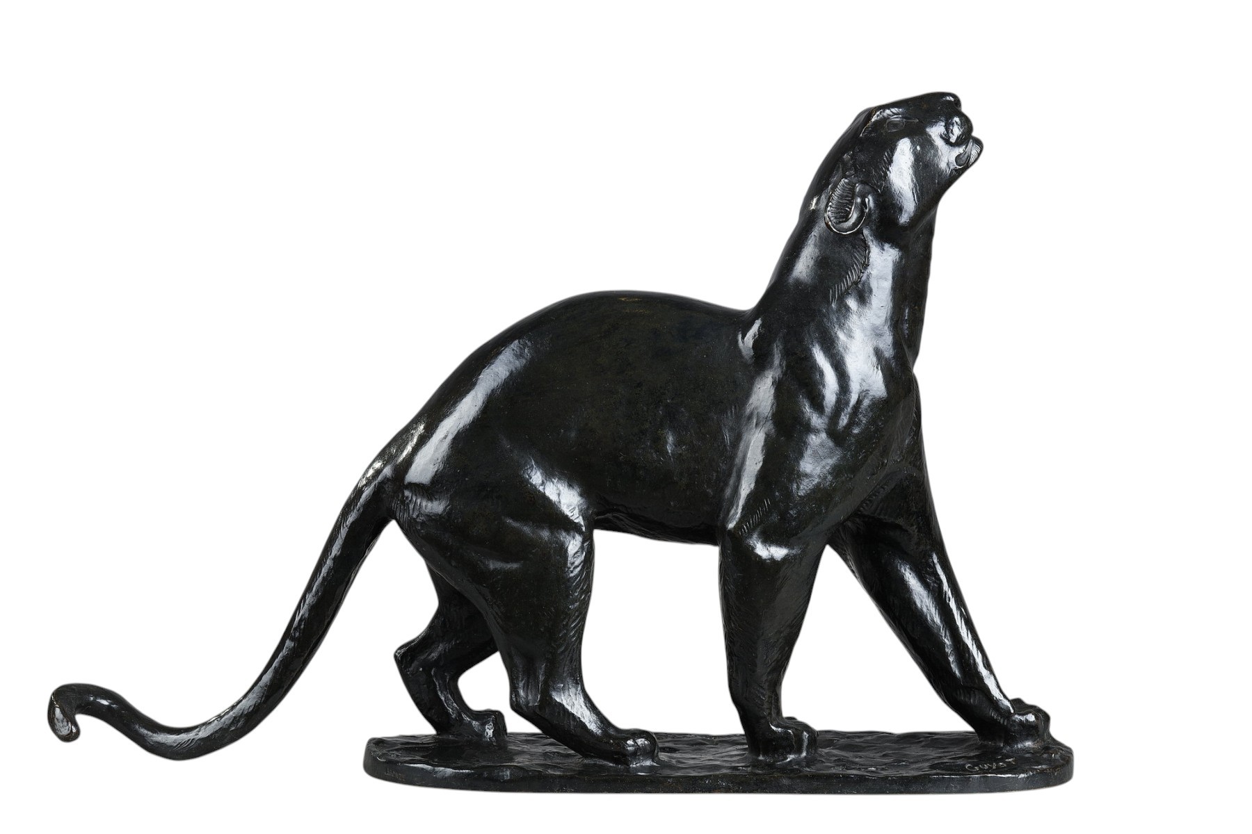 Retrouver le mobilier ou les objets d''art similaires à « Panthère humant - Georges GUYOT (1885-1972) » présenté par Galerie Tourbillon, antiquaire à Paris dans la catégorie Sculpture en Bronze Art Déco, Sculpture.