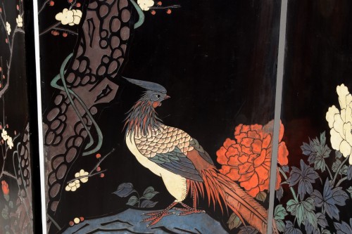 Le paravent est décoré d’une laque Coromandel. La technique de laquage pour les paravents de Coromandel, connue sous le nom de kuancai (littéralement "couleurs gravées"), a émergé pendant la fin de la dynastie Ming (1368-1644) en Chine et aura un ...