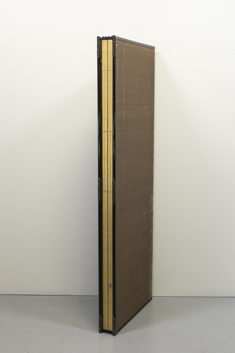 État de conservation : Le paravent est en excellent état. Légères traces d’usure en surface, taches et retouches de la dorure. Marques d’usage sur la monture en laque, cohérentes avec l’âge.