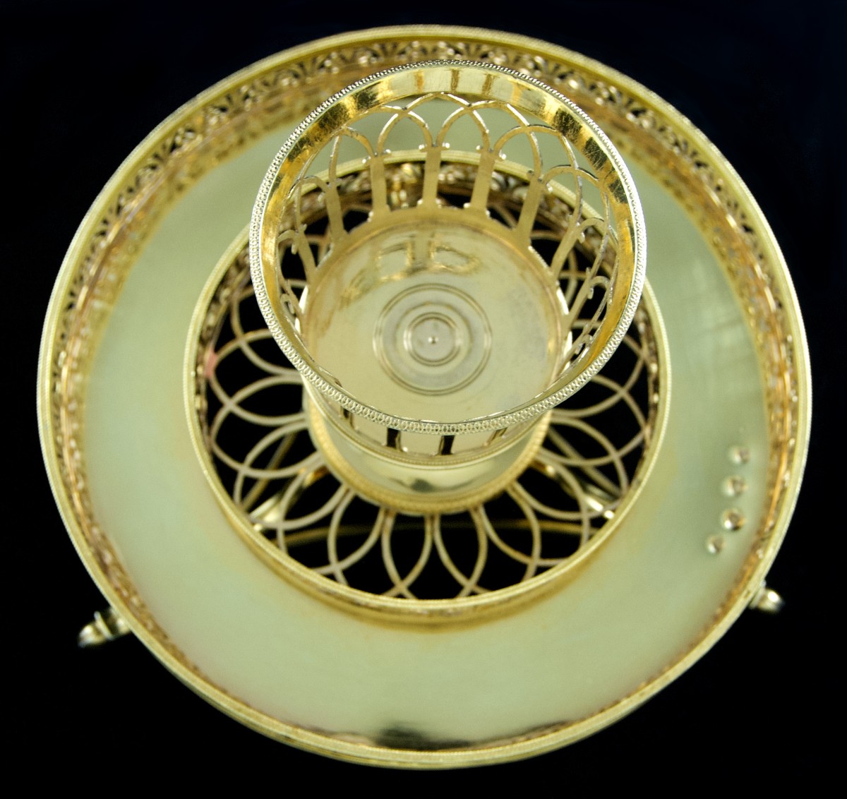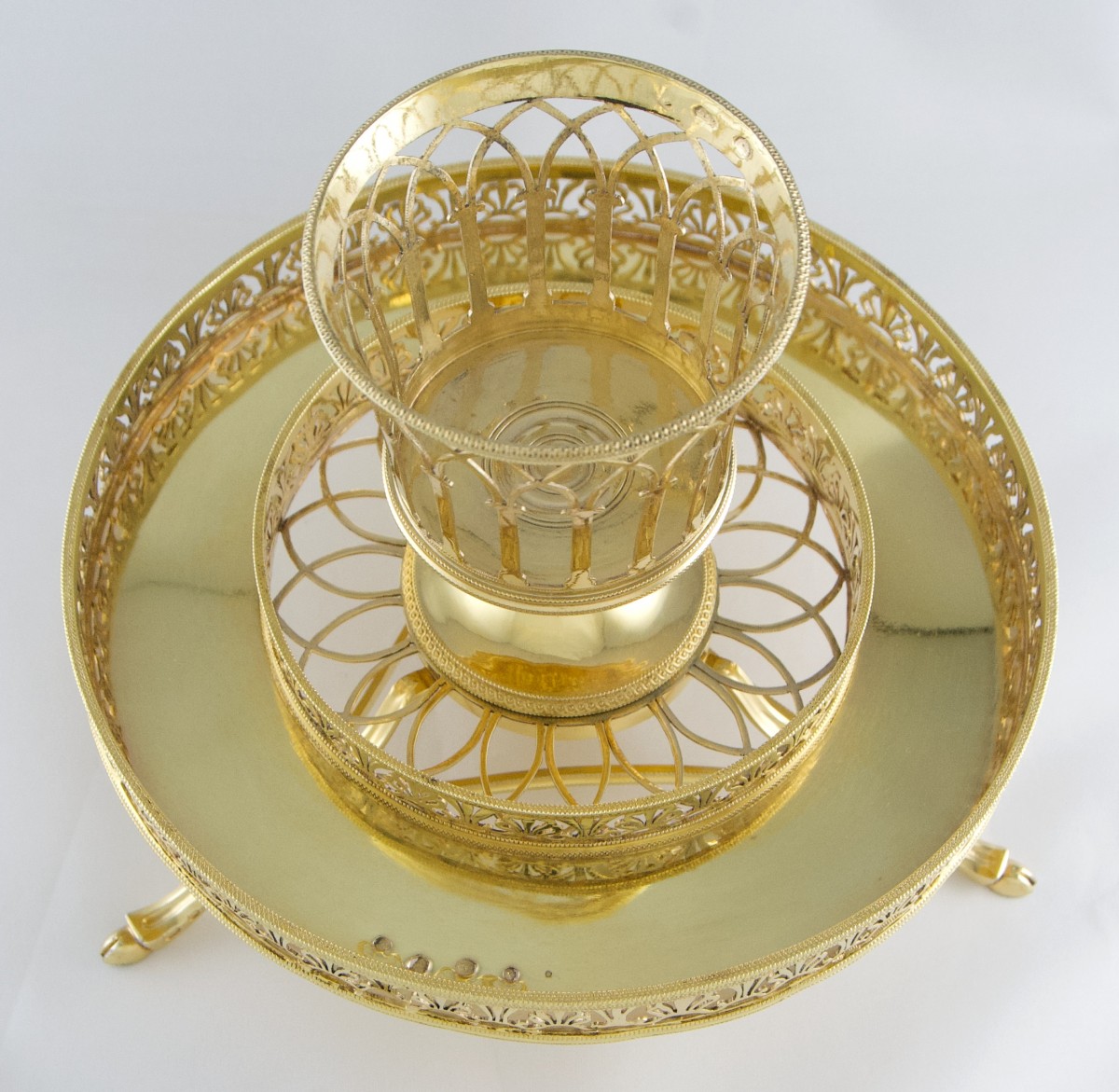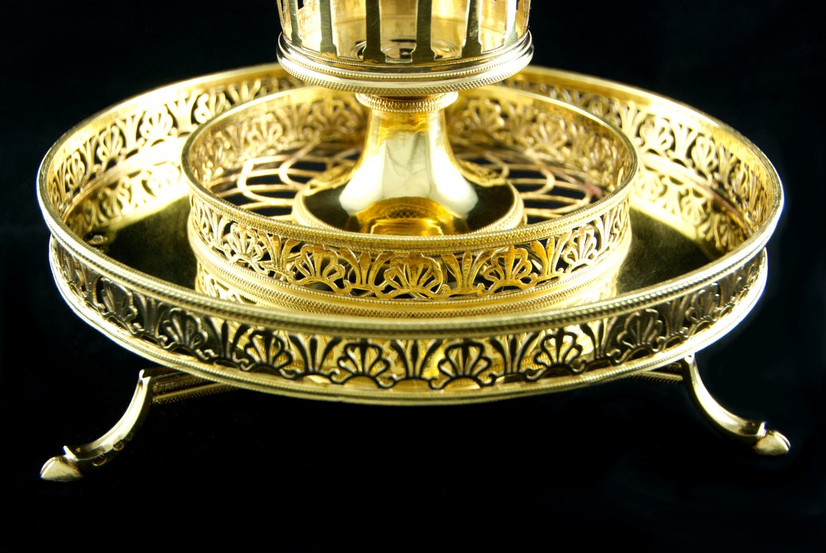 Superbe présentoir en argent massif plaqué d’or fin entièrement repercé et ciselé.