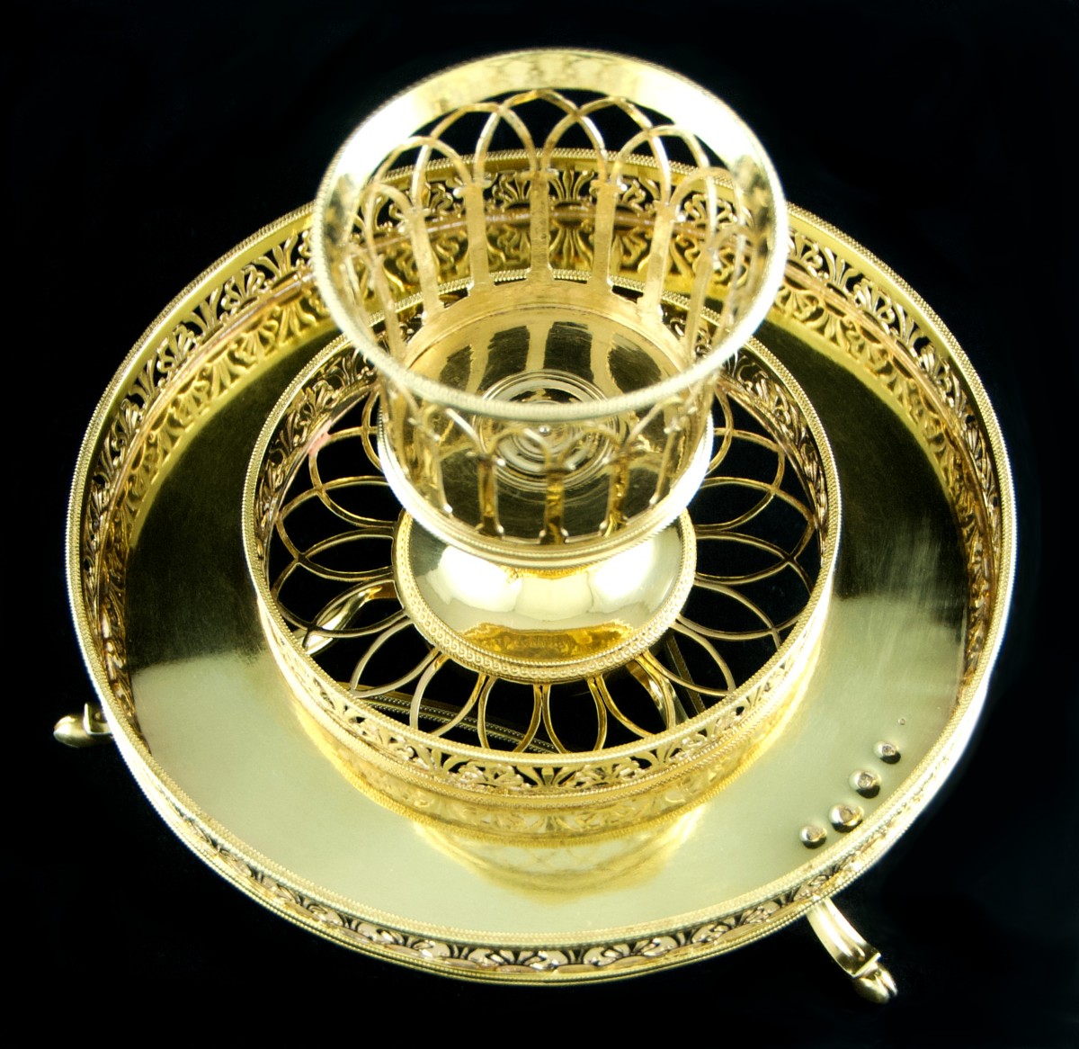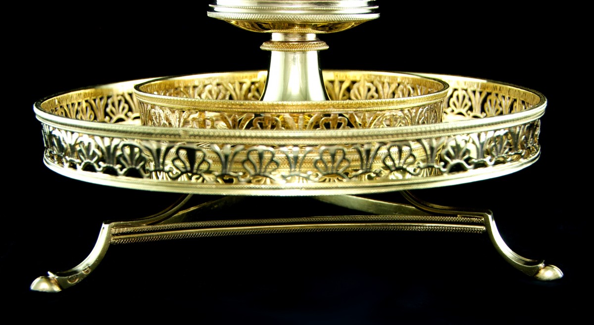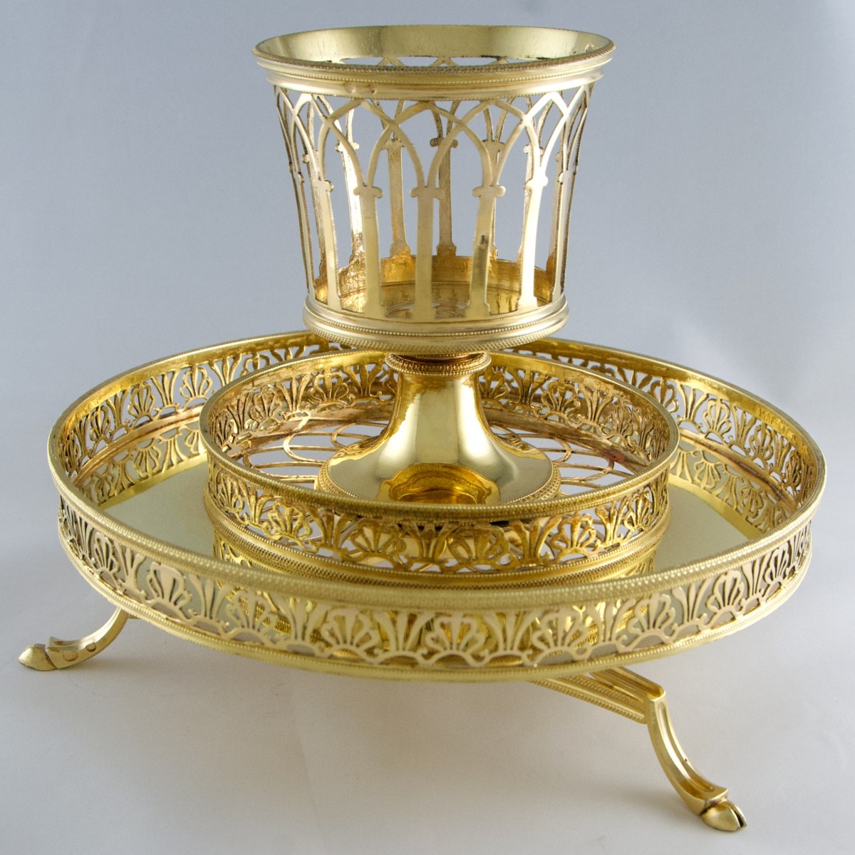 Superbe présentoir en argent massif plaqué d’or fin entièrement repercé et ciselé.