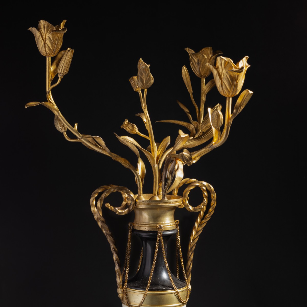 Retrouver le mobilier ou les objets d''art similaires à « Importante paire de candélabres floraux, Paris fin de l'époque Louis XVI » présenté par Schoppmann Art and Antiques, antiquaire à Saint Raphaël dans la catégorie Bougeoirs et Chandeliers Louis XVI, Luminaires.