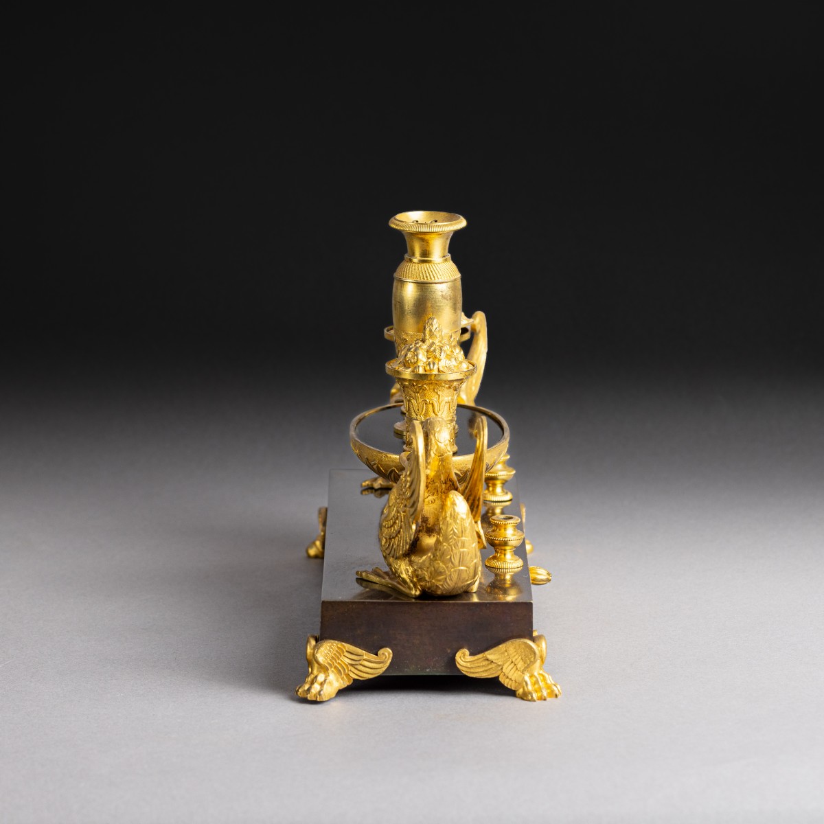 Retrouver le mobilier ou les objets d''art similaires à « Important encrier aux cygnes, en bronze patiné et doré, époque Empire » présenté par Schoppmann Art and Antiques, antiquaire à Saint Raphaël dans la catégorie Encrier Empire, Objet de décoration.