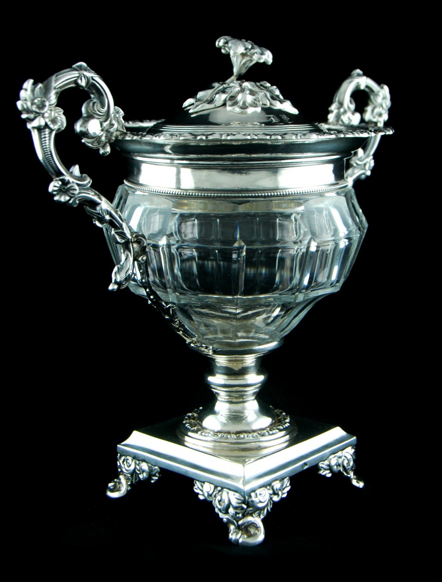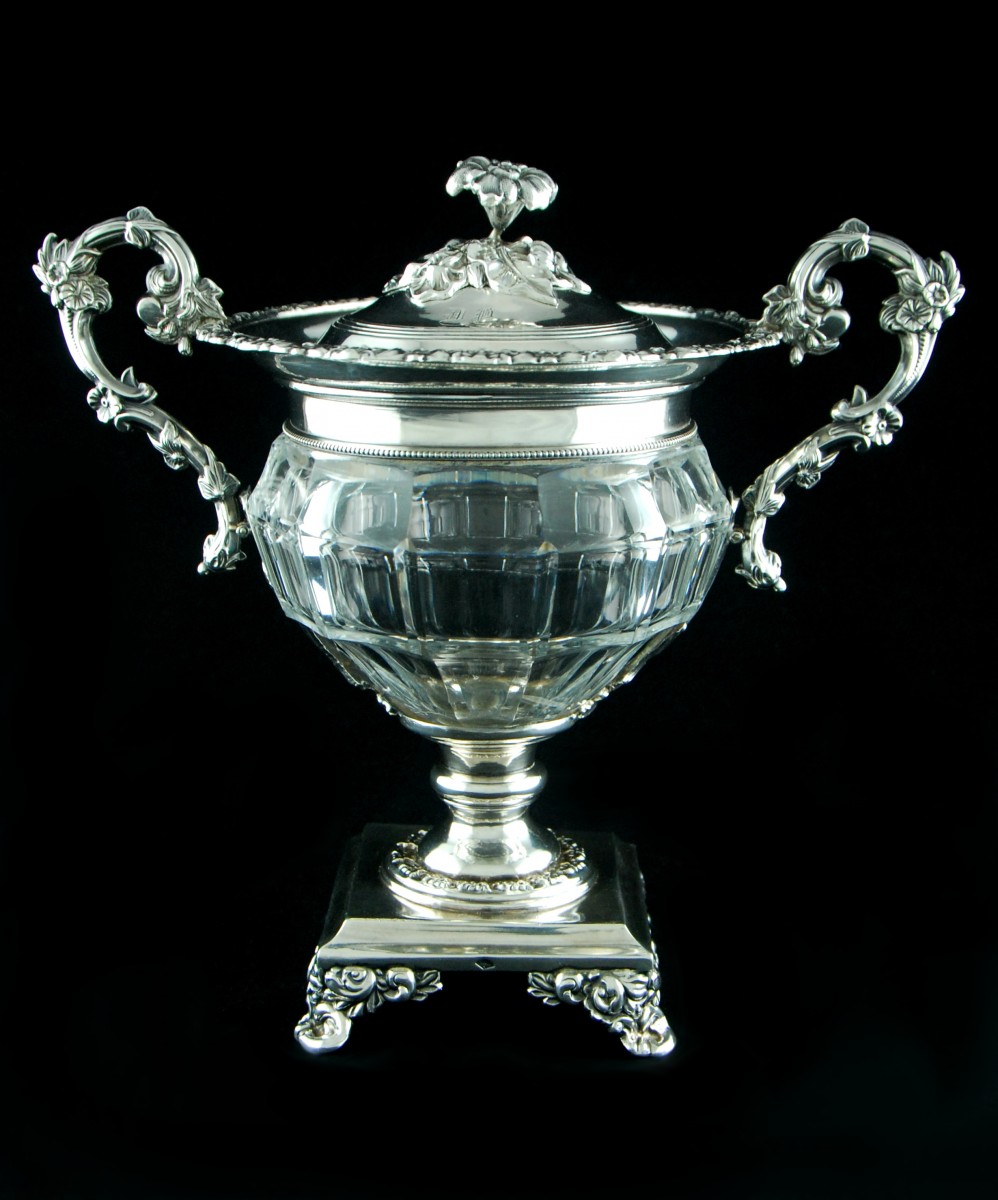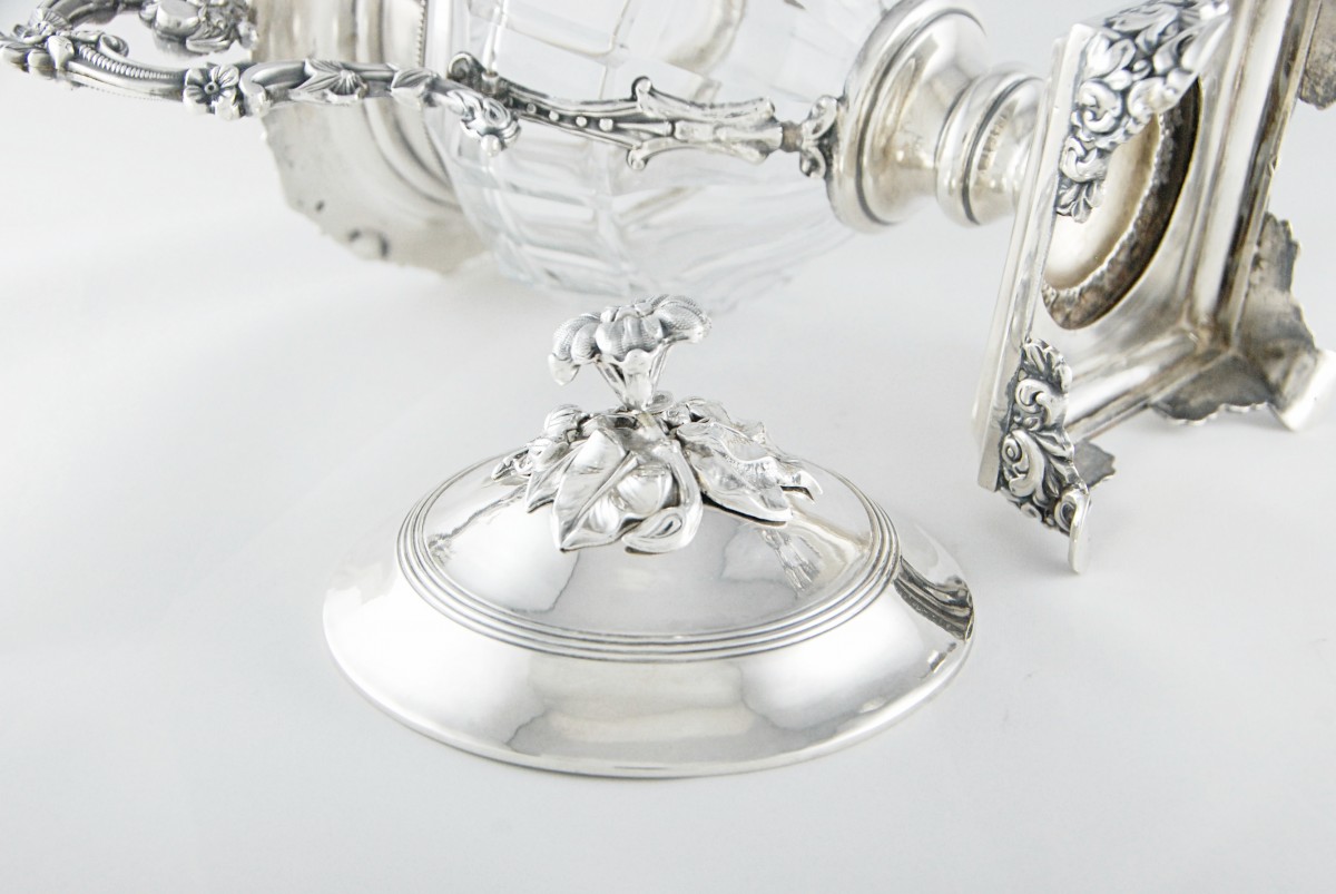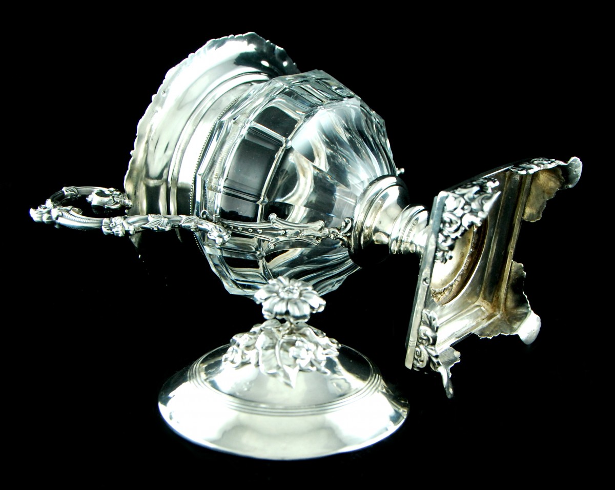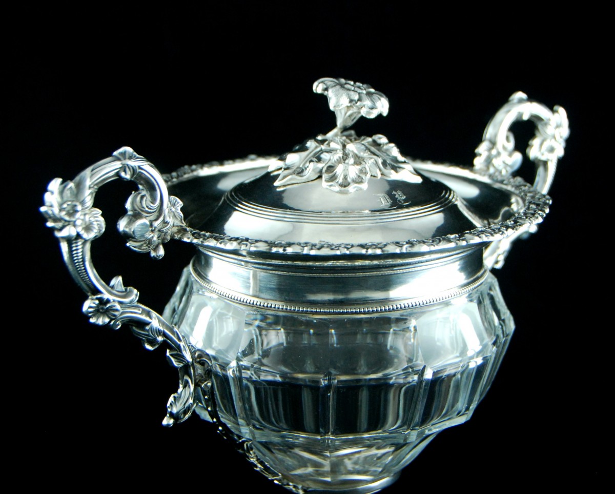 Drageoir en cristal taillé et argent massif 950/1000, réalisé par le maître-orfèvre parisien Jean-François VEYRAT.
