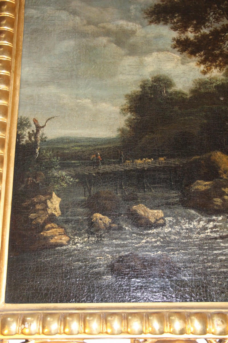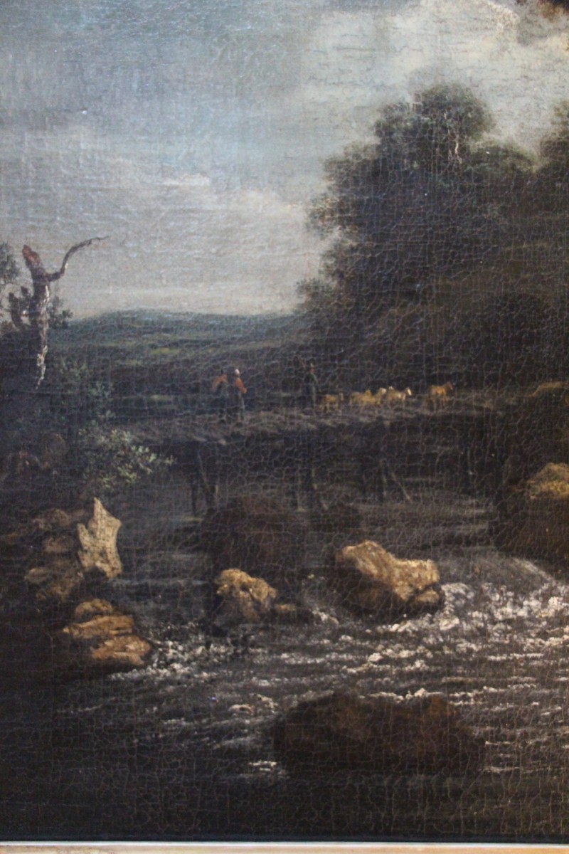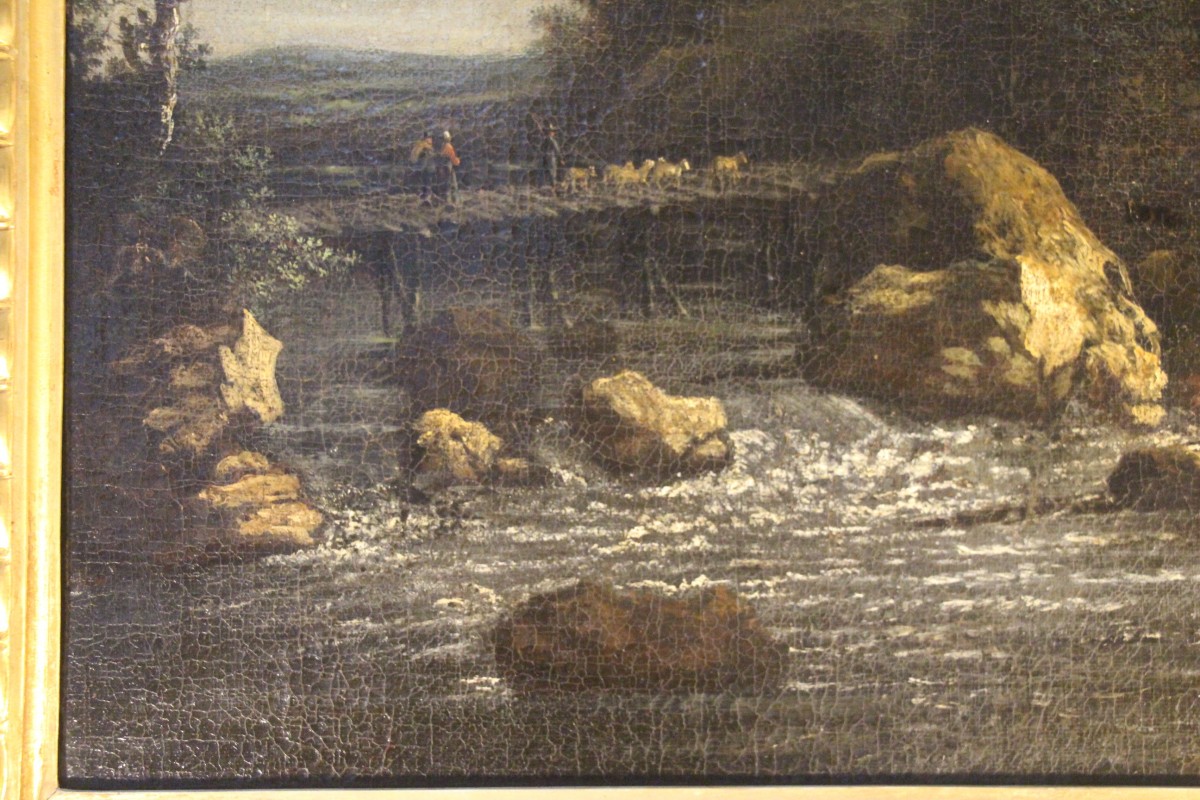 Le tableau que nous exposons représente un paysage animé de personnages sur fond d'architecture.