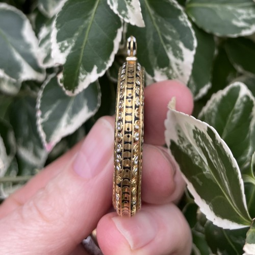 Contrairement à ces œuvres comparables (la BnF Camée.408 étant une exception), l'artisan de ce médaillon rare et exceptionnel a repoussé les limites du réalisme, gravant le visage du Christ de larmes de sang, intensifiant encore l'impact émotionnel. La monture en or émaillé exquise rehausse la beauté de ce médaillon, démontrant un savoir-faire extraordinaire.
