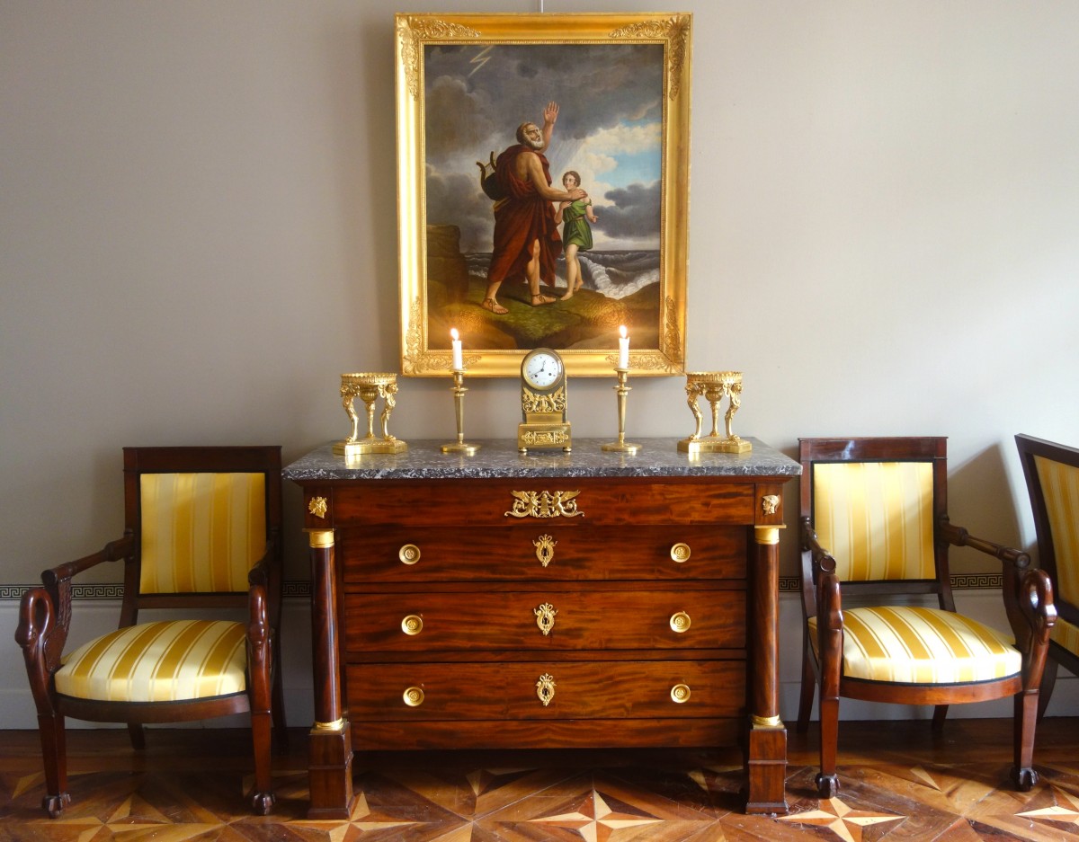 Pierre-Philippe Thomire (1751-1843) est l'un des plus remarquables bronziers de sa génération ; il est reconnu pour sa production de bronze d’ameublement sous l'Ancien Régime. Il élève ce métier sous l'Empire à son plus haut niveau de qualité tout en créant, dans les premières années du XIXe siècle, une entreprise industrielle dont le rayonnement est européen, illustration de l'excellence de l'industrie française de cette époque, développant très vite une clientèle internationale dans la haute aristocratie et les cours Européennes.
