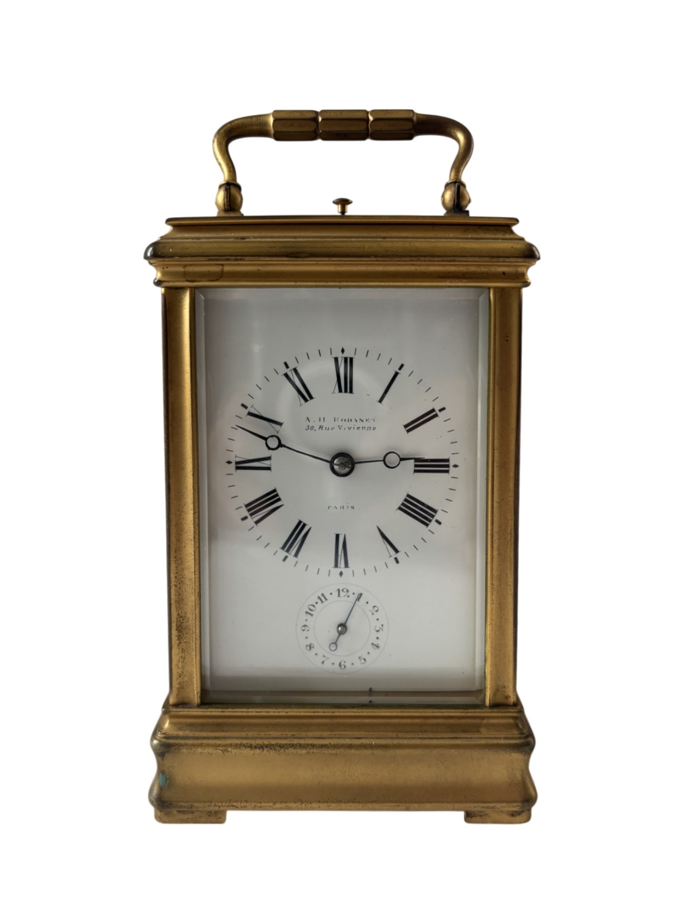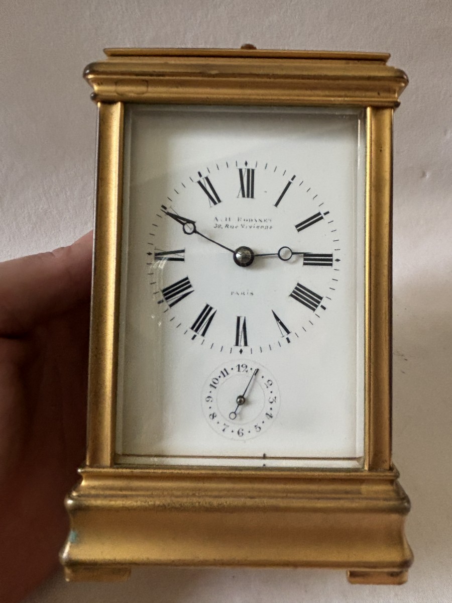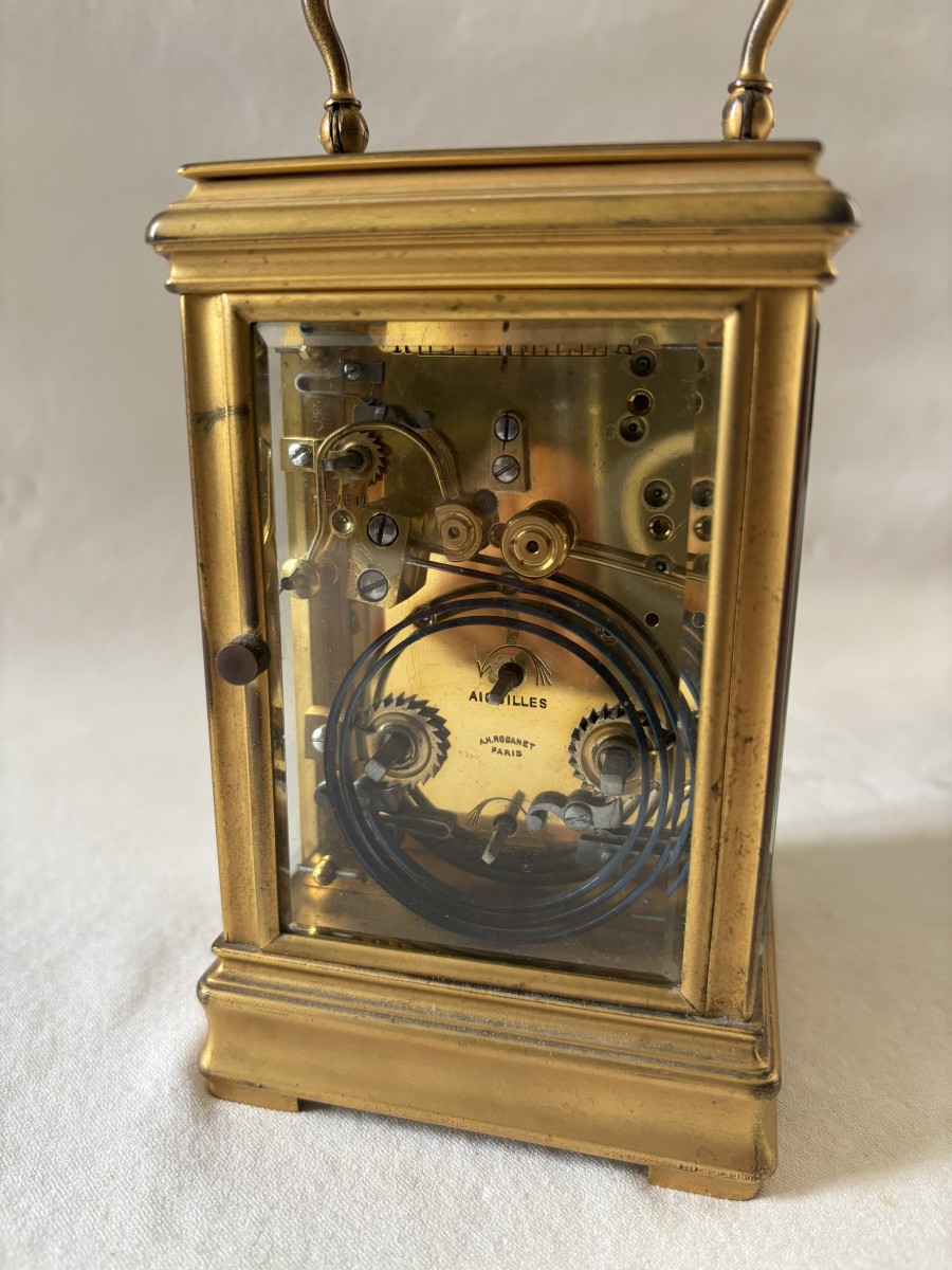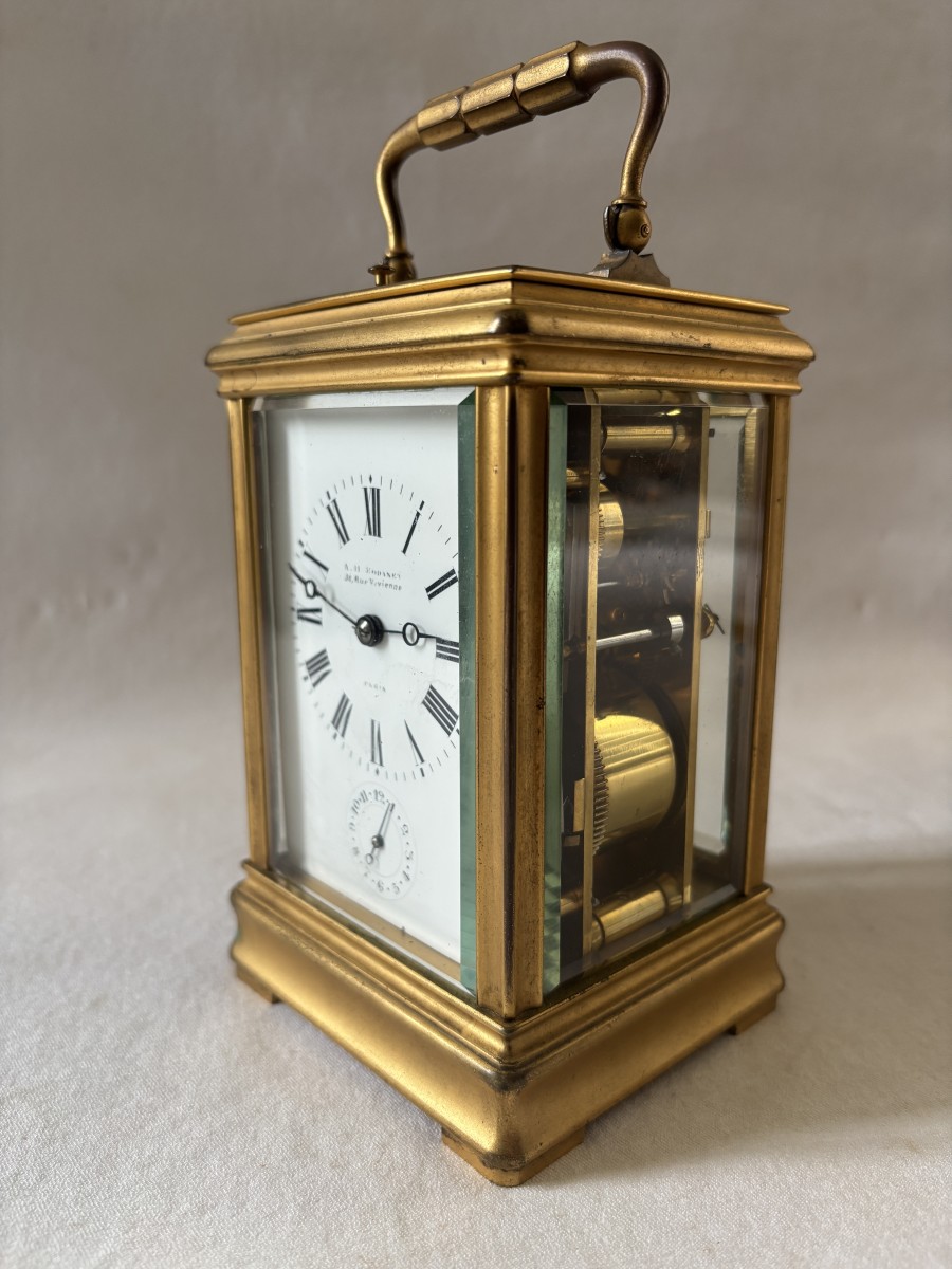Retrouver le mobilier ou les objets d''art similaires à « Pendulette de voyage à sonnerie » présenté par Jullion Antiquités, antiquaire à Port d'envaux dans la catégorie Pendule Napoléon III, Horlogerie.