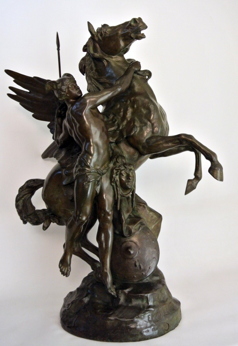 Retrouver le mobilier ou les objets d''art similaires à « Persée et Pégase d'après Emile Picault (1833-1922) » présenté par Marc Menzoyan, antiquaire à Beauvallon dans la catégorie Sculpture en Bronze Art nouveau, Sculpture.