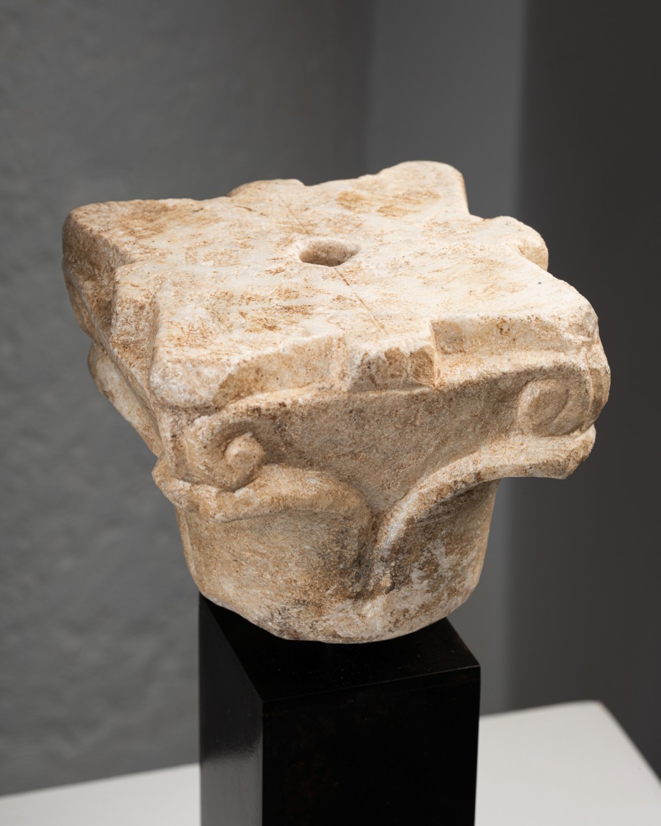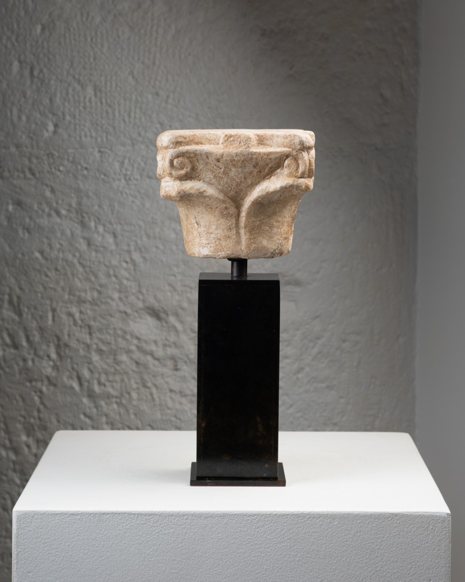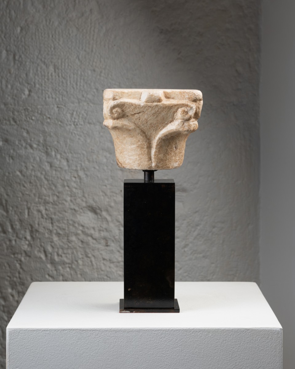 Retrouver le mobilier ou les objets d''art similaires à « Petit chapiteau en marbre – Italie XIIe siècle » présenté par Galerie Alexandre Piatti, antiquaire à Paris dans la catégorie Sculpture en Marbre Moyen Âge, Sculpture.