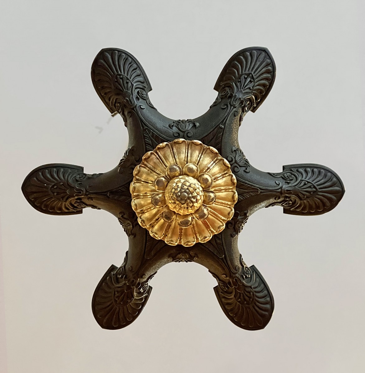 Retrouver le mobilier ou les objets d''art similaires à « Petit lustre à six lumières en bronze d'époque Restauration » présenté par Galerie Philippe Guegan, antiquaire à Paris dans la catégorie Lustre Restauration - Charles X, Luminaires.