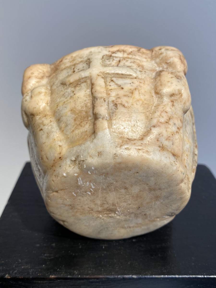 Ravissant petit mortier en albâtre à décor alterné d'orants et de croix.