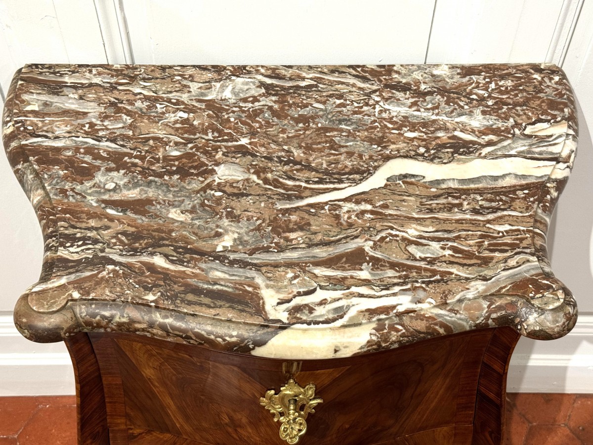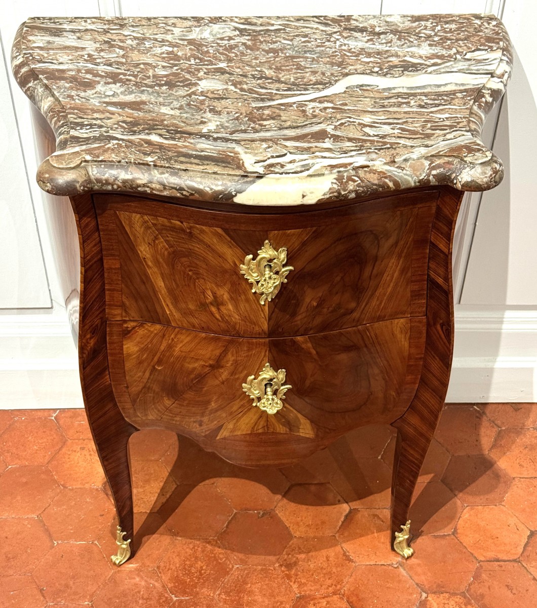 Retrouver le mobilier ou les objets d''art similaires à « Petite commode d’époque Louis XV estampillée Popsel » présenté par Sérignan Antiquités, antiquaire à Avignon dans la catégorie Commode Transition, Mobilier.