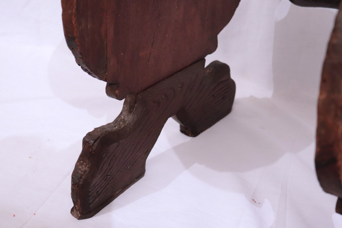 Piédestal avec silhouettes, en bois sculpté, laqué et doré avec des volutes reliées par une traverse à enroulement.