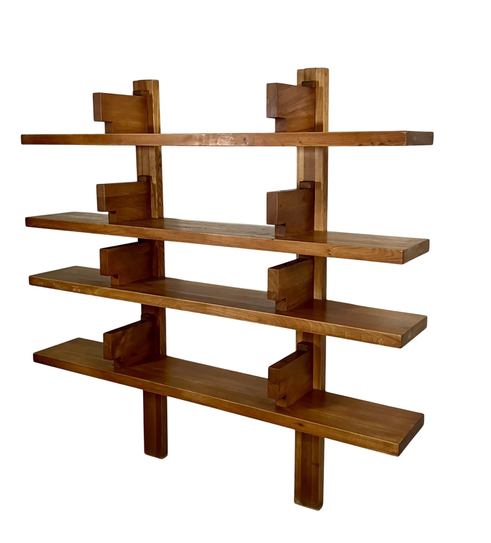 Retrouver le mobilier ou les objets d''art similaires à « Étagère en orme massif attribuée à Pierre Chapo » présenté par Galerie Vaudemont, antiquaire à Nancy dans la catégorie Bibliothéque, vitrine Années 50-60, Mobilier.