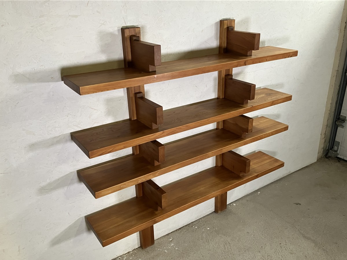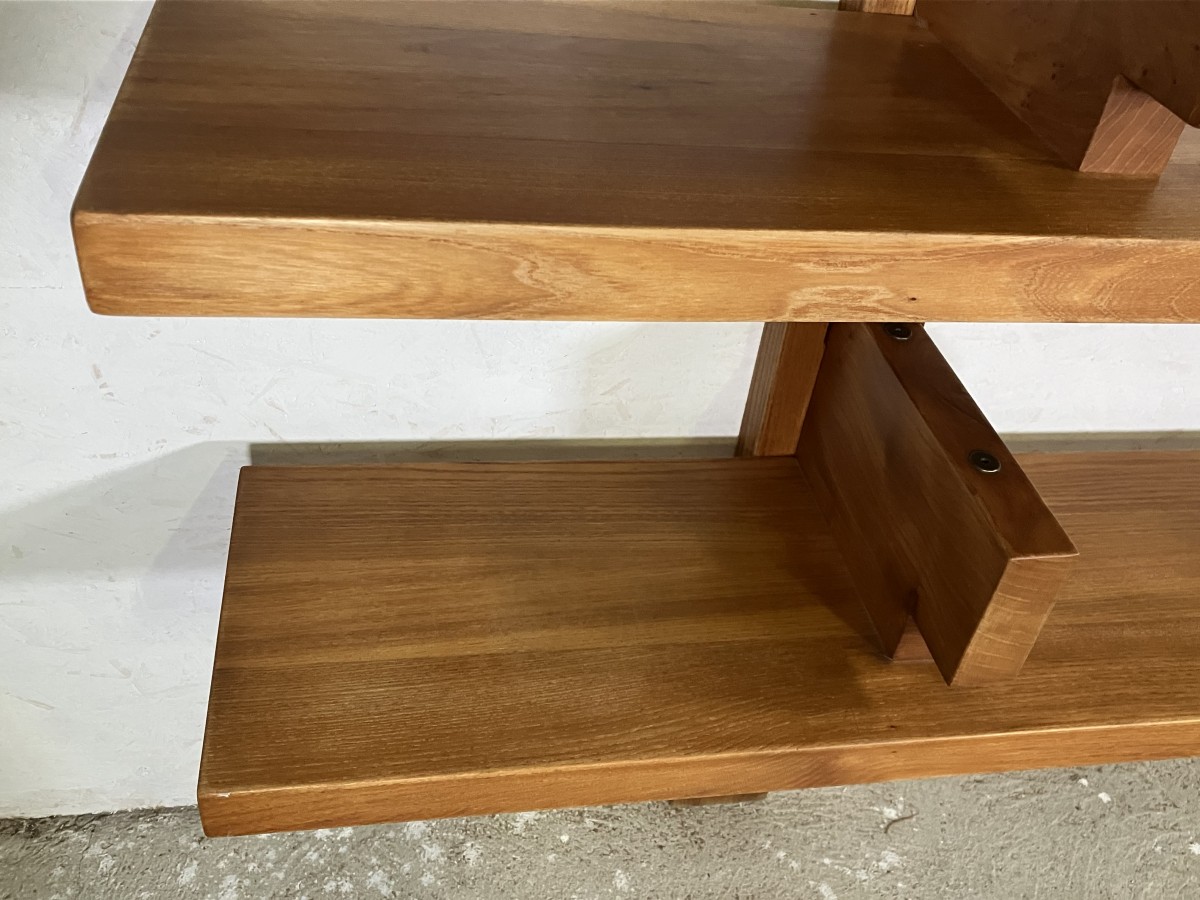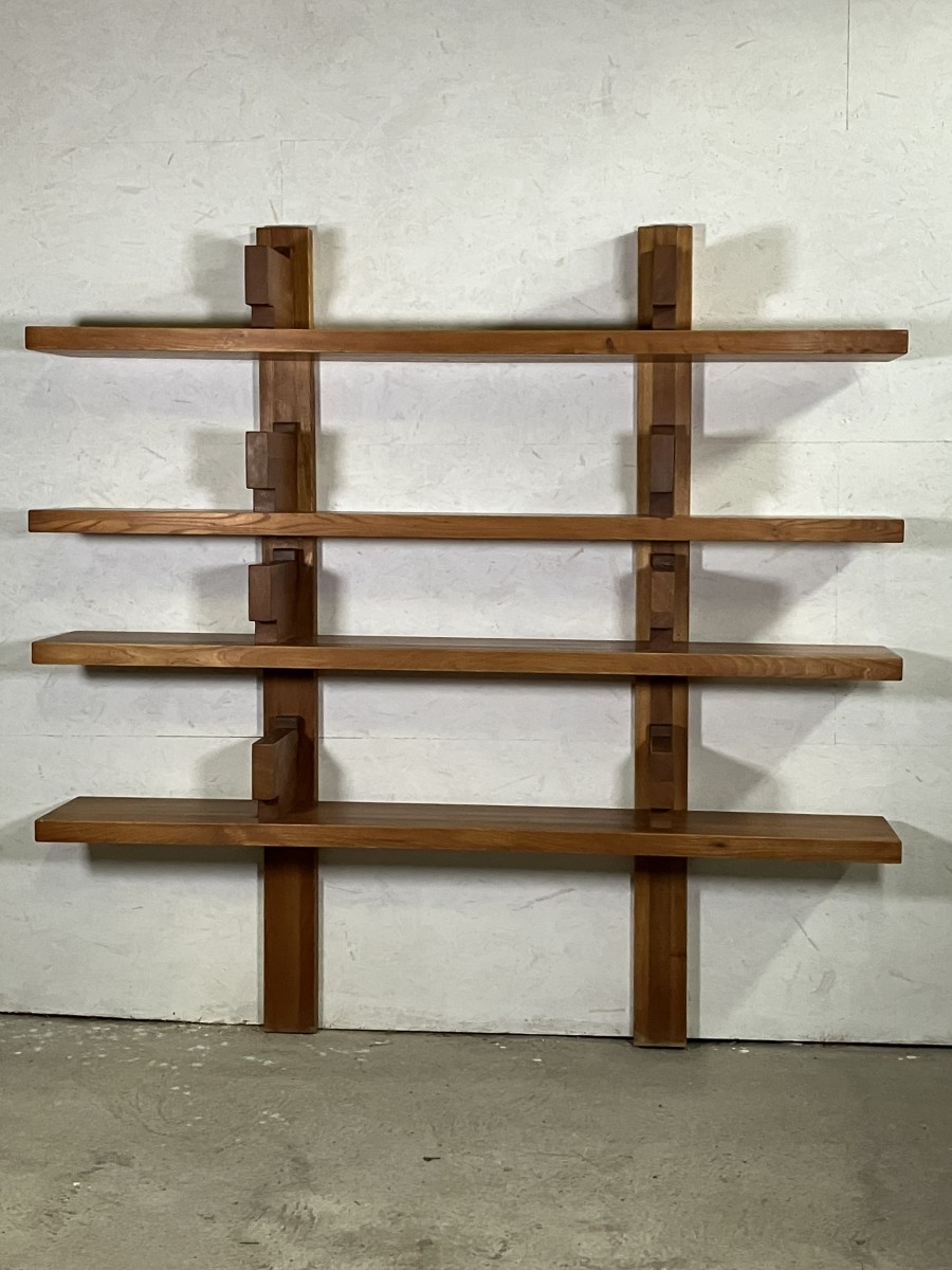 Rare étagère en orme massif attribuée à Pierre Chapo.