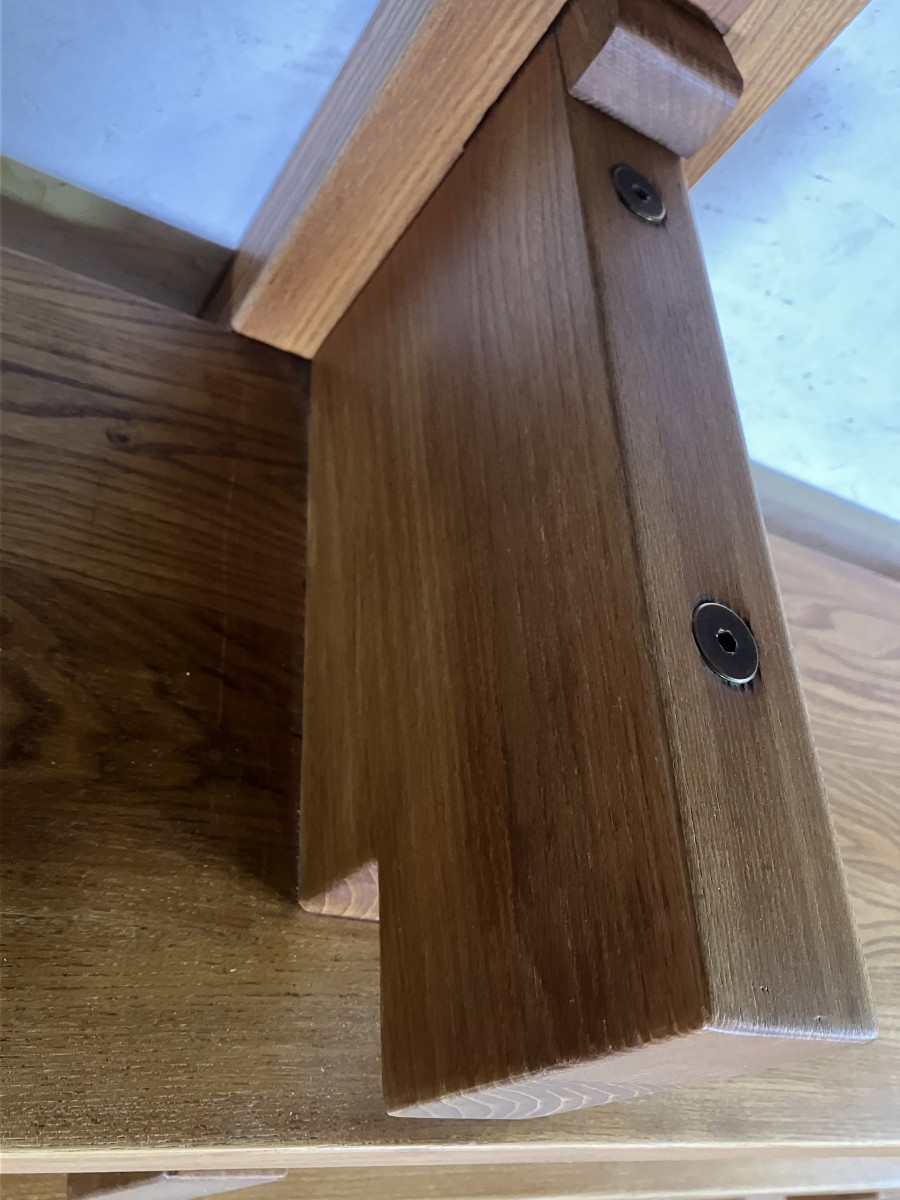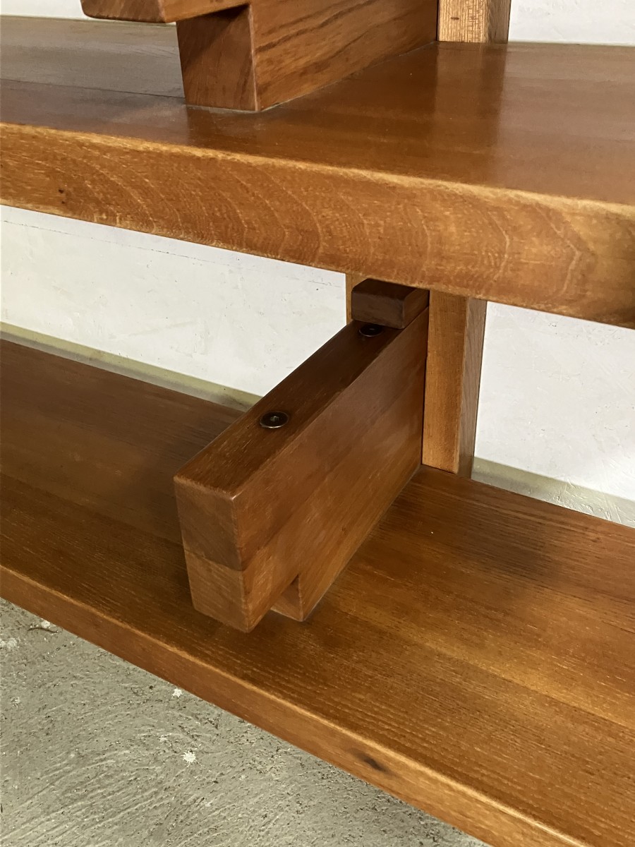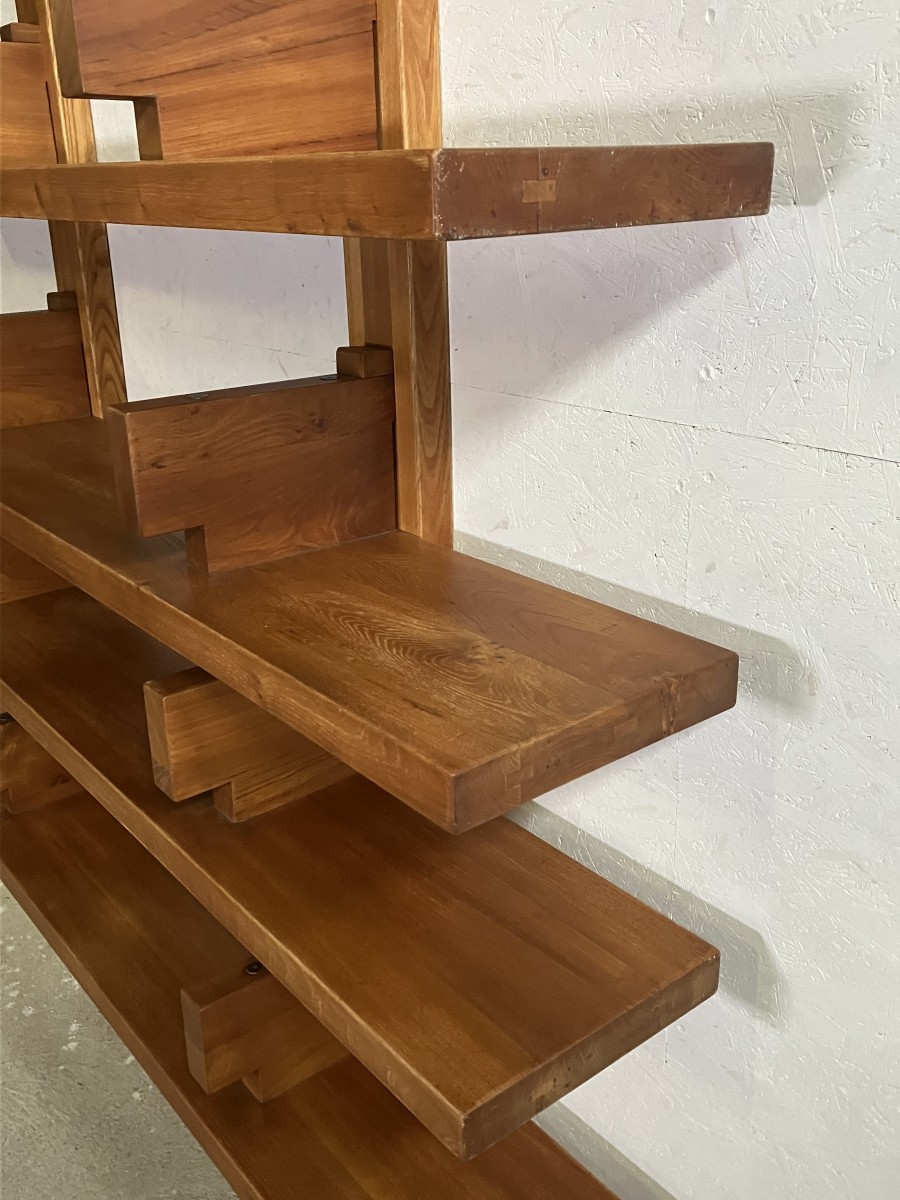Rare étagère en orme massif attribuée à Pierre Chapo.