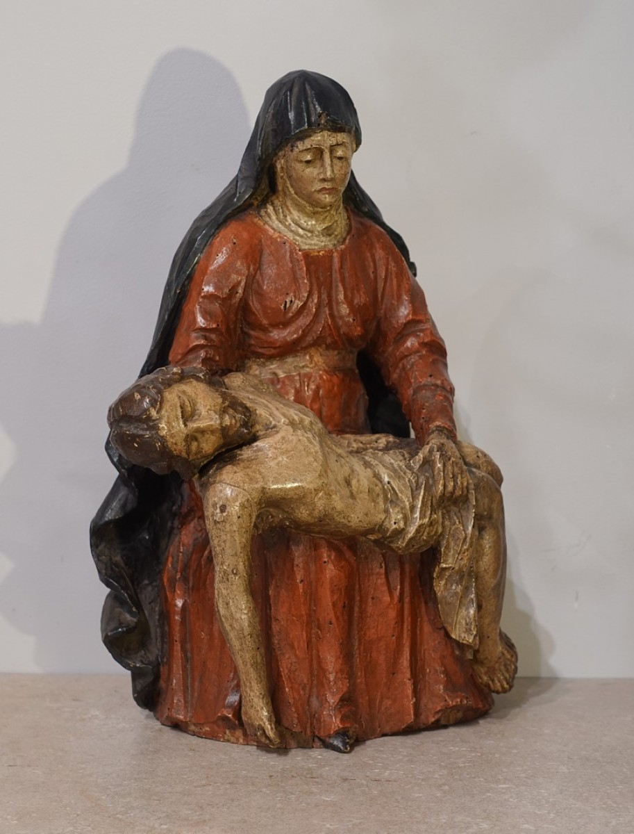 Retrouver le mobilier ou les objets d''art similaires à « Pietà ou Vierge de Pitié - France XVIIe siècle » présenté par Gérardin et Cie, antiquaire à Lyon dans la catégorie Sculpture en Bois Louis XIII, Sculpture.