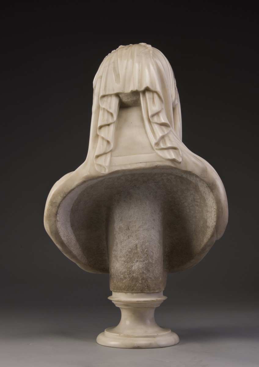 Ce magnifique buste en marbre représente très probablement une Pietà, c’est-à-dire la Vierge Marie en deuil. Il a auparavant été identifié comme une « Vestale » et présente en effet de nombreuses similitudes, si bien que cette interprétation ne peut être exclue.