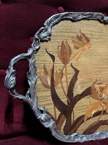 Plateau de service à la libellule d’époque Art Nouveau par Louis Majorelle et sa monture en métal argenté par Victor Saglier (1809-1894)