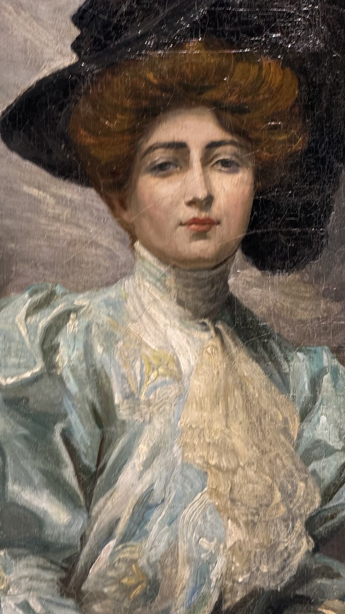 Magnifique huile sur toile représentant un « Portrait de dame ». Artiste inconnu. Italie. Seconde moitié du XIXe siècle. Dimensions de la toile : 126 × 75 cm (hauteur × largeur). Dimensions avec cadre : 160 × 110 cm.