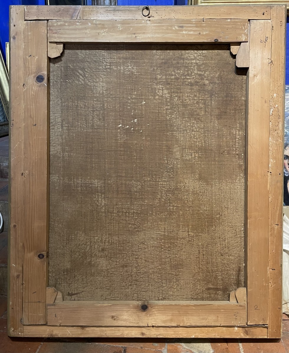 Le tableau a conservé son cadre d’origine en bois doré. Un nettoyage très délicat a été effectué, révélant une surface picturale aujourd’hui en très bon état de conservation.