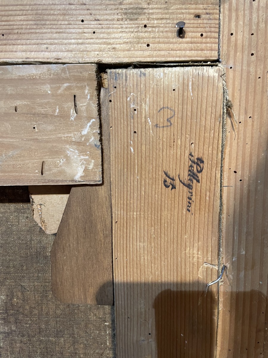 Au revers figurent d’anciennes inscriptions à l’encre, probablement du XIXe siècle, dont le nom Pellegrini ainsi que le numéro 15, témoins d’un ancien inventaire, d’une collection ou d’un passage historique.