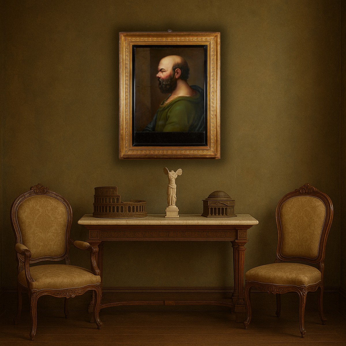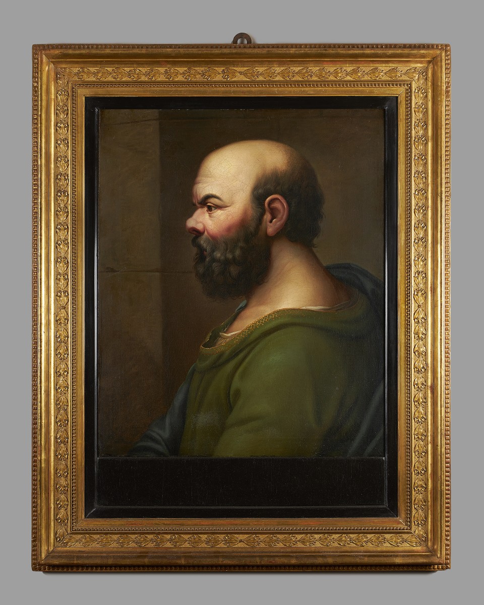 Ce portrait en buste du philosophe grec Socrate est un bel exemple de la peinture néoclassique de la fin du XVIIIe siècle.